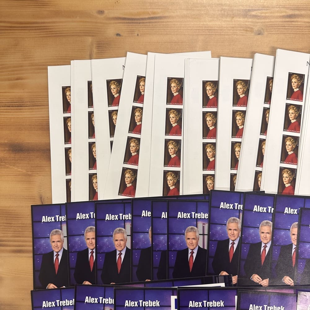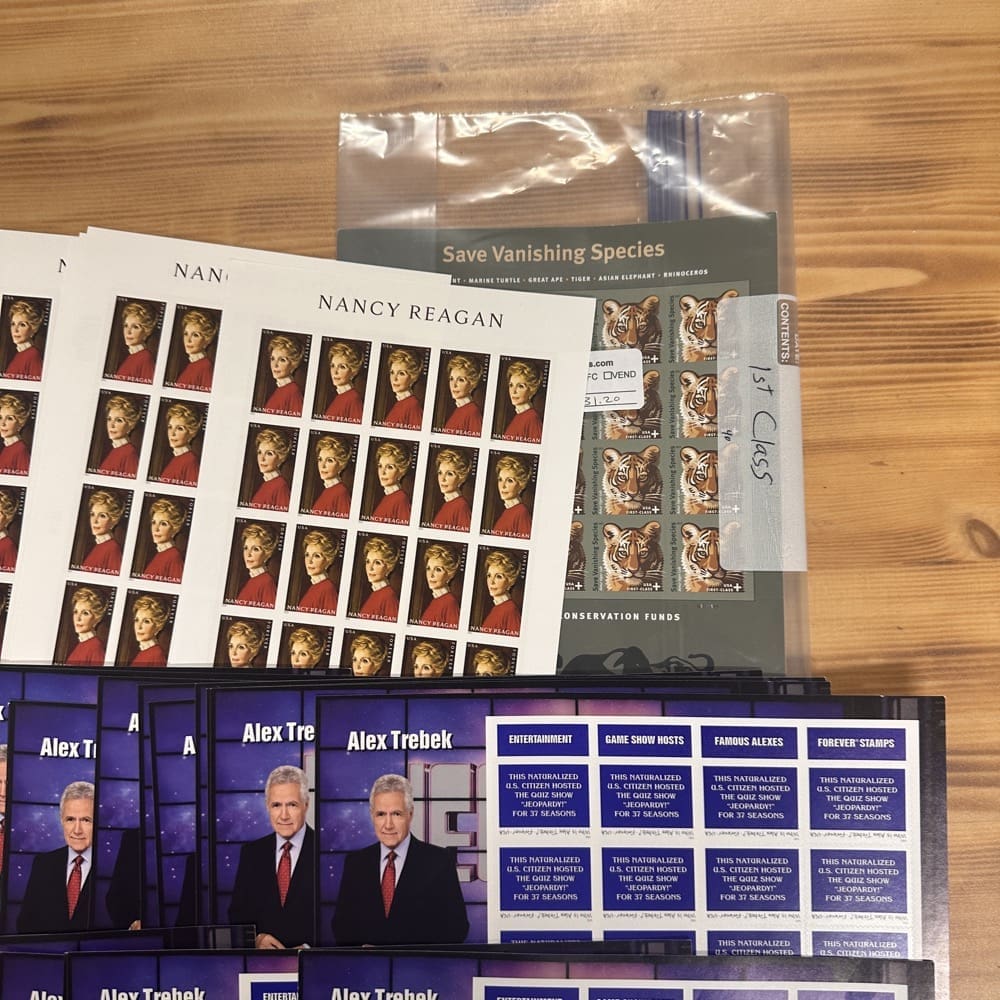 Lot of First-Class Forever® stamps in various designs.