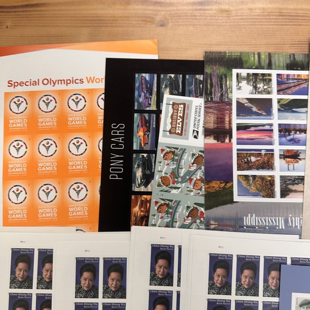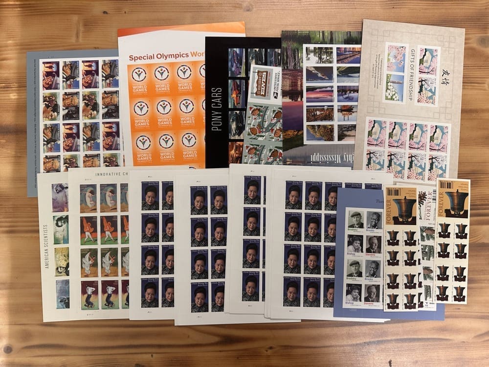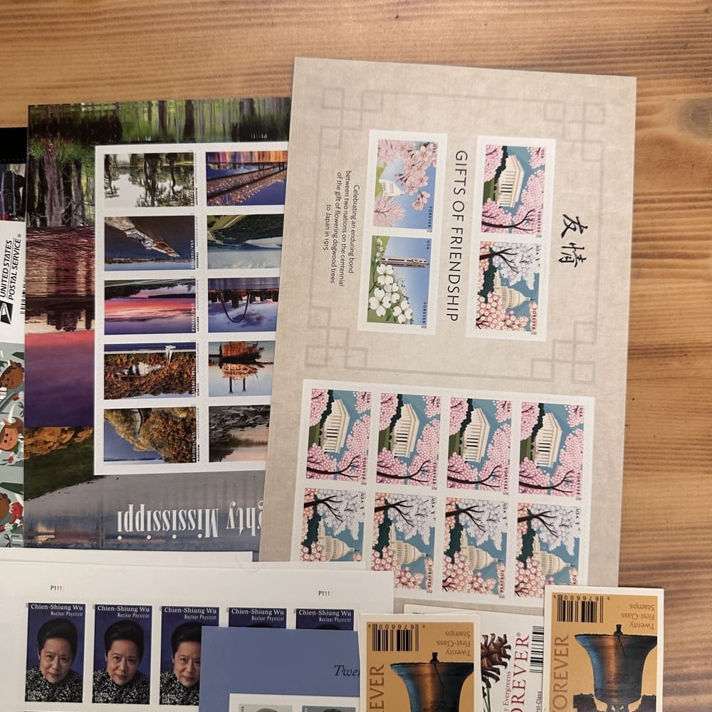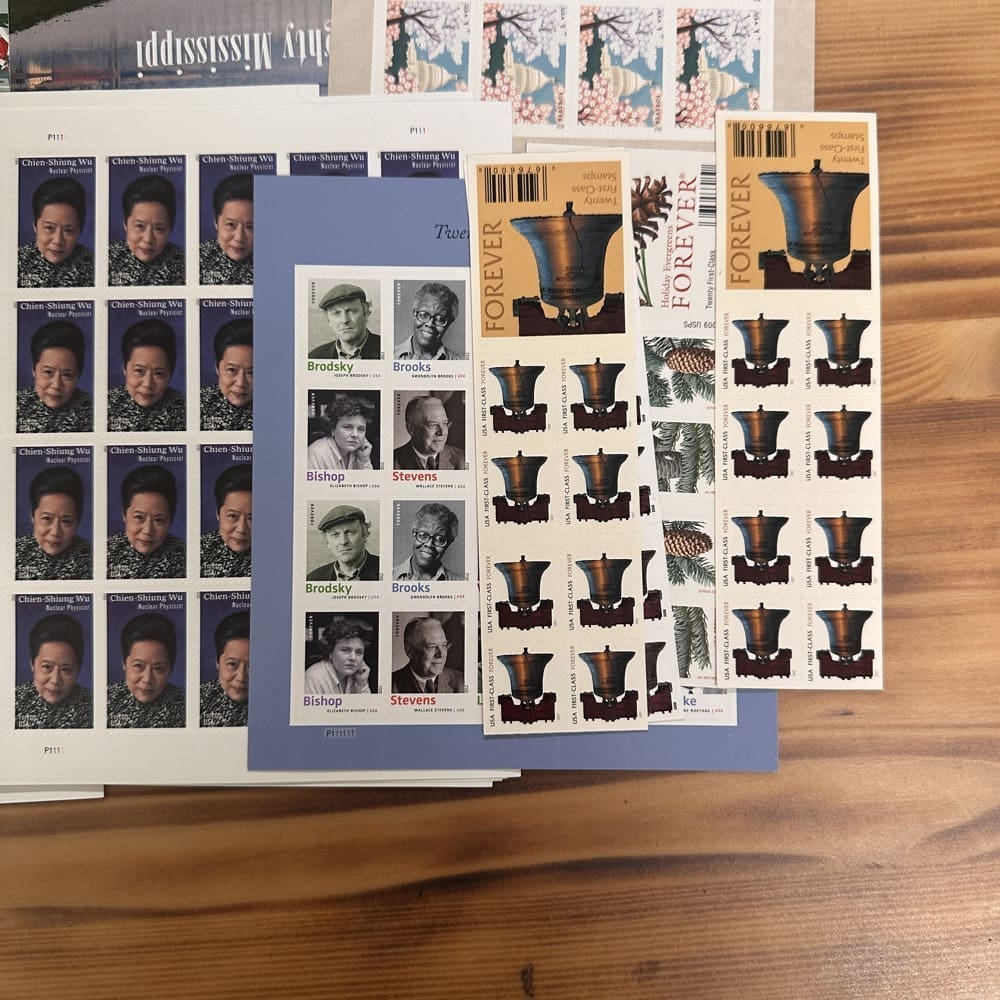 Lot of First-Class Forever® stamps in various designs.