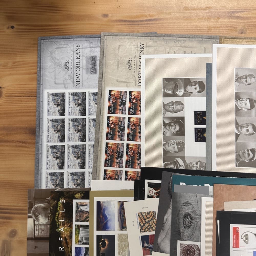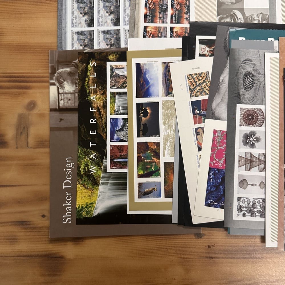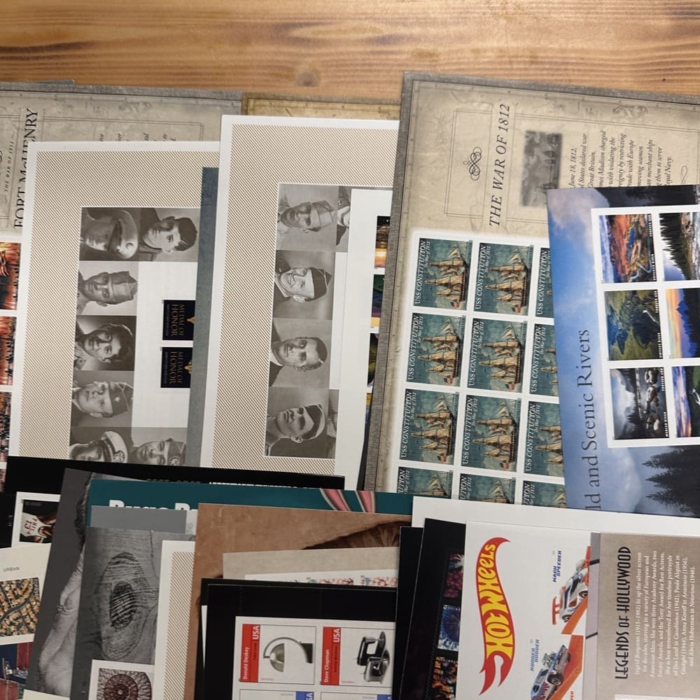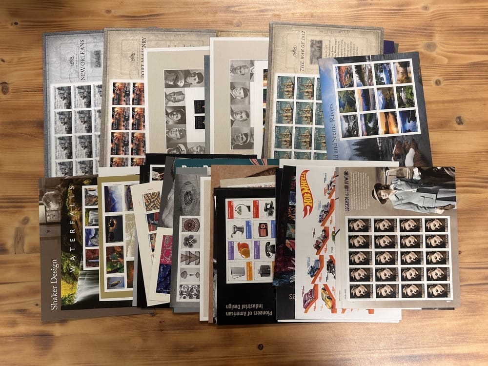 Lot of First-Class Forever® stamps in various designs.