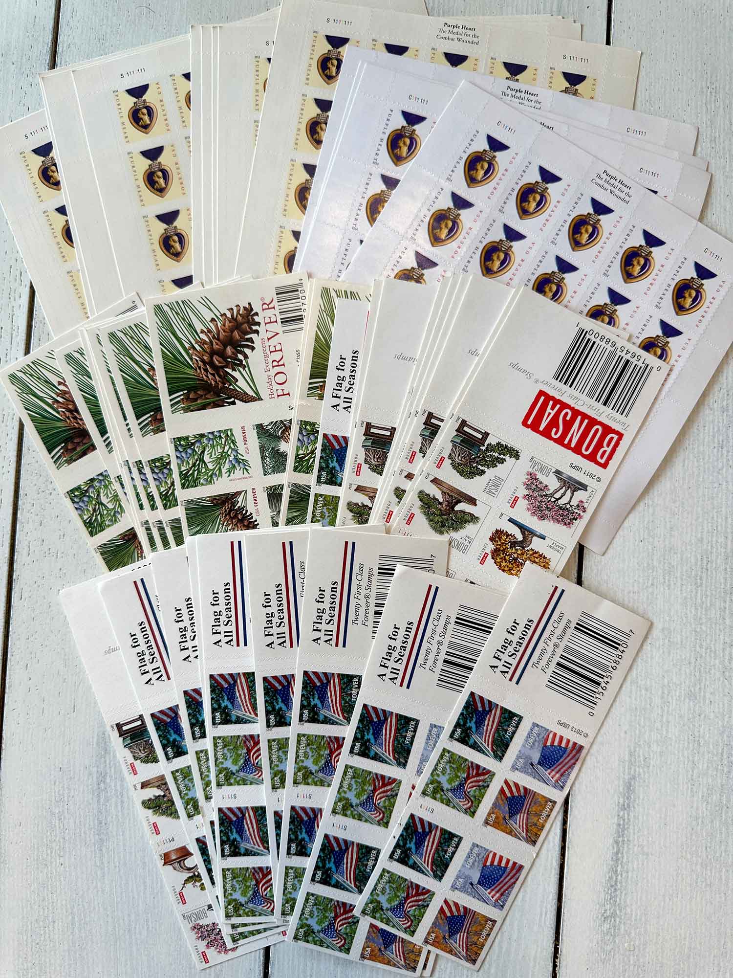 Lot of First-Class Forever® stamps in various designs.