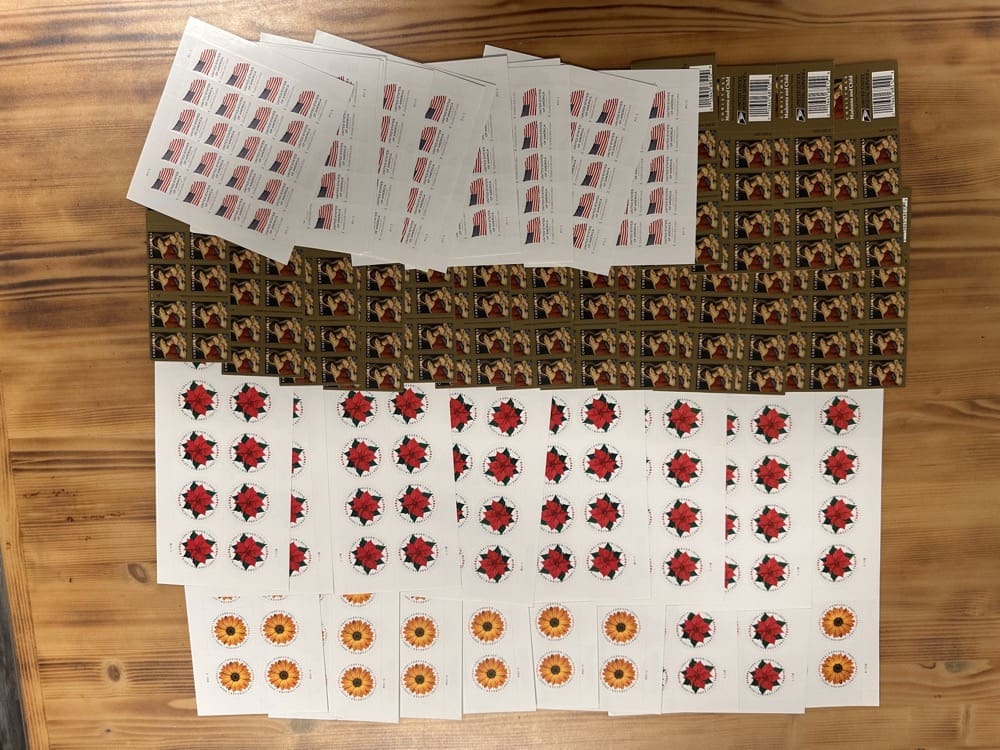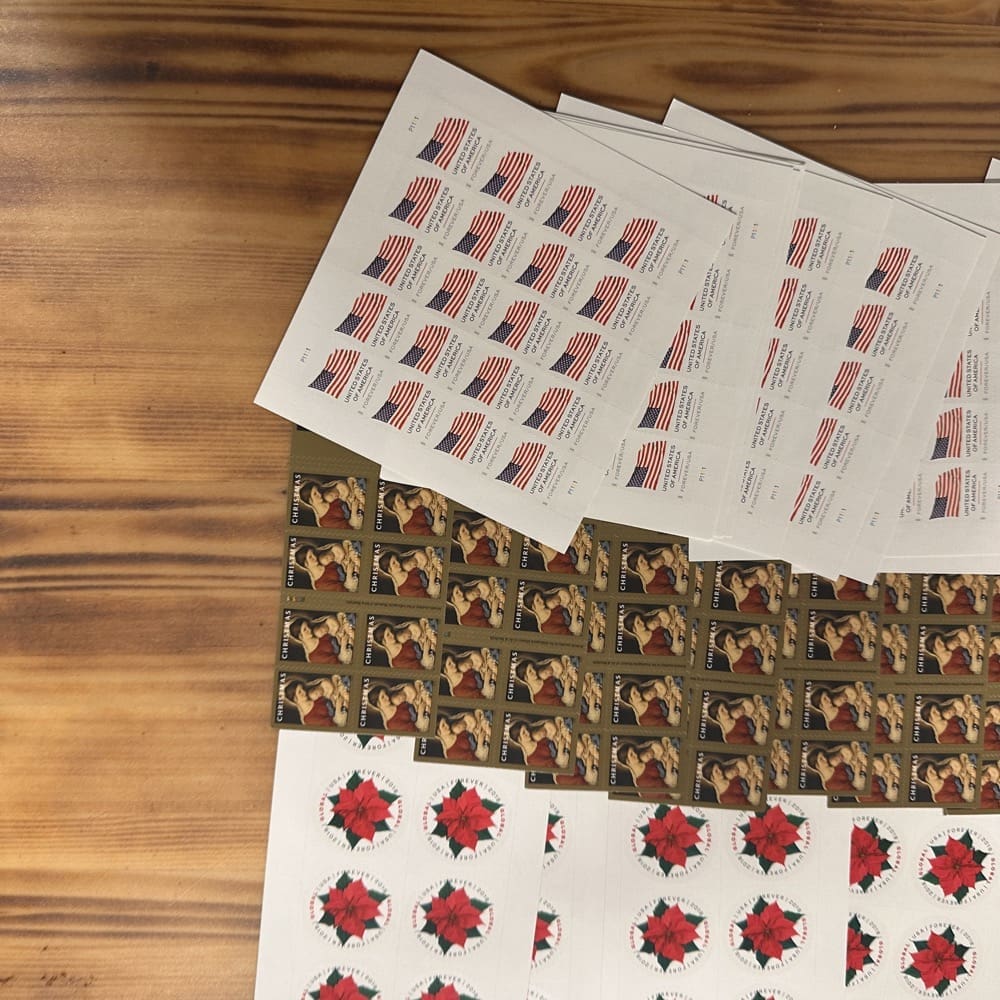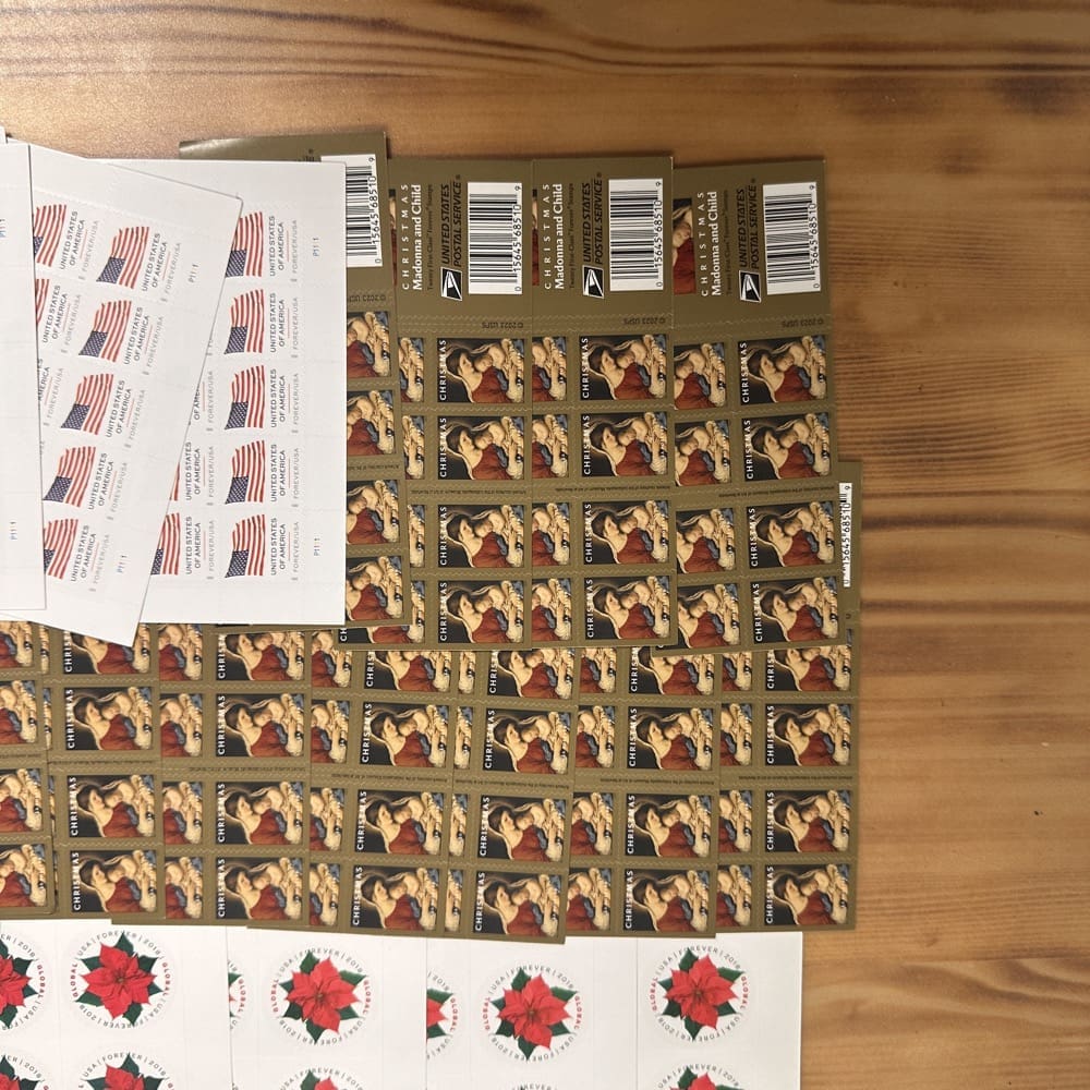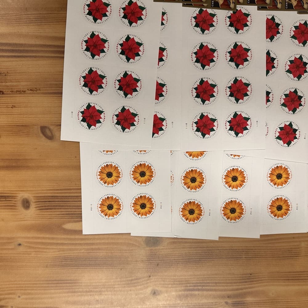 Lot of First-Class Forever® stamps in various designs.