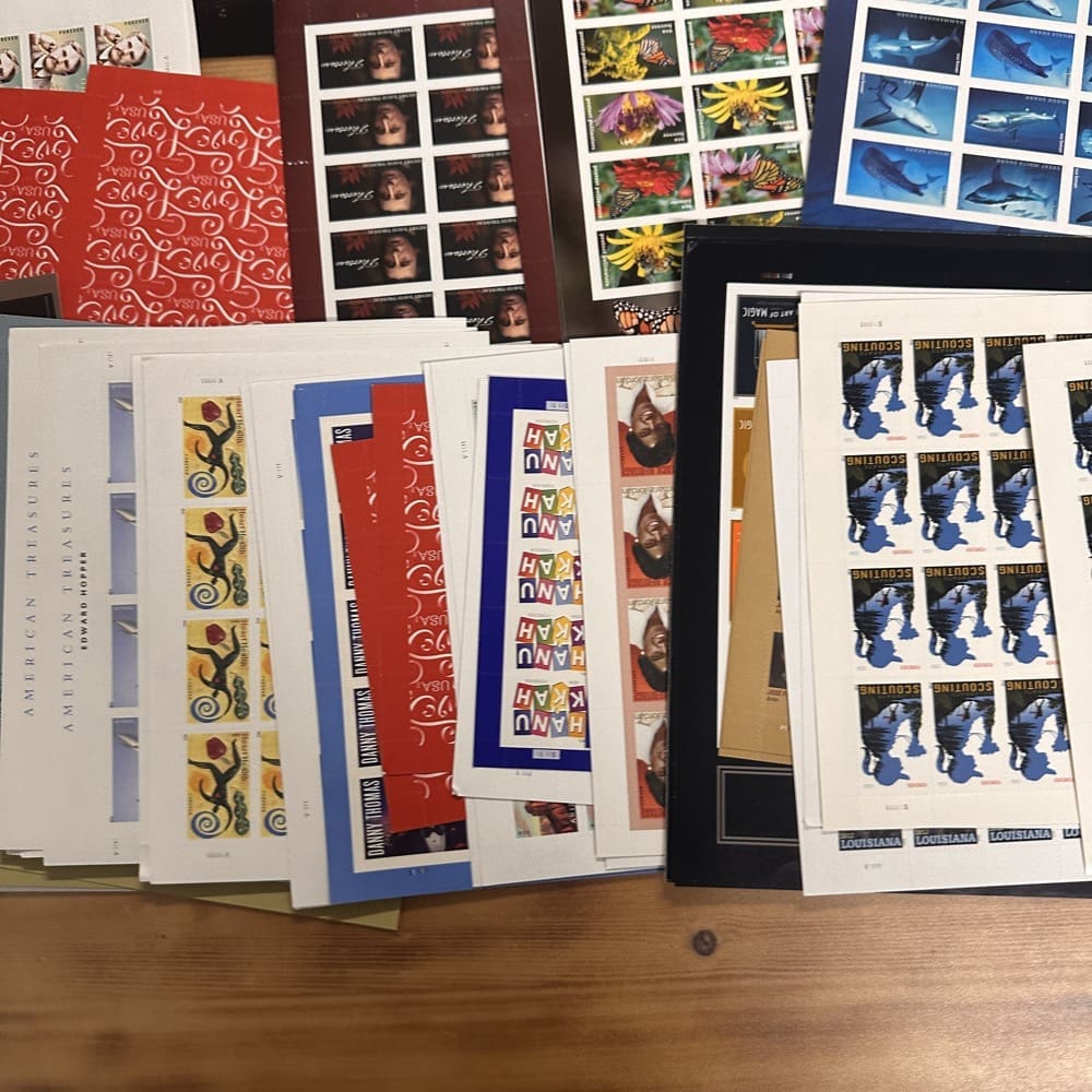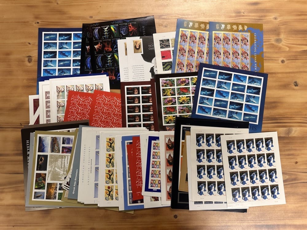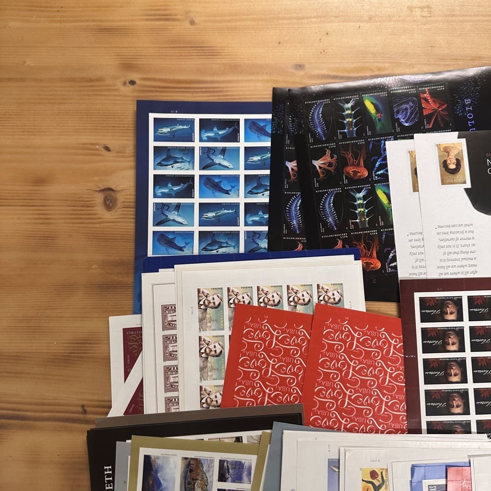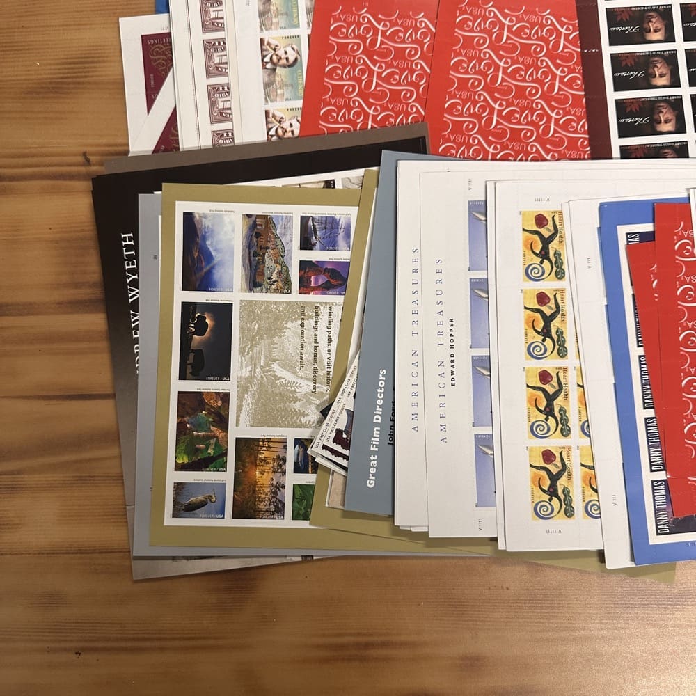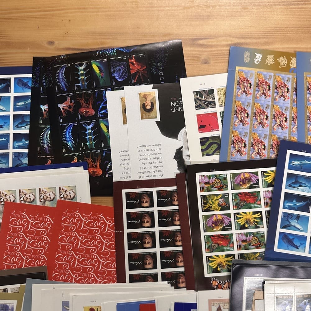 Lot of First-Class Forever® stamps in various designs.