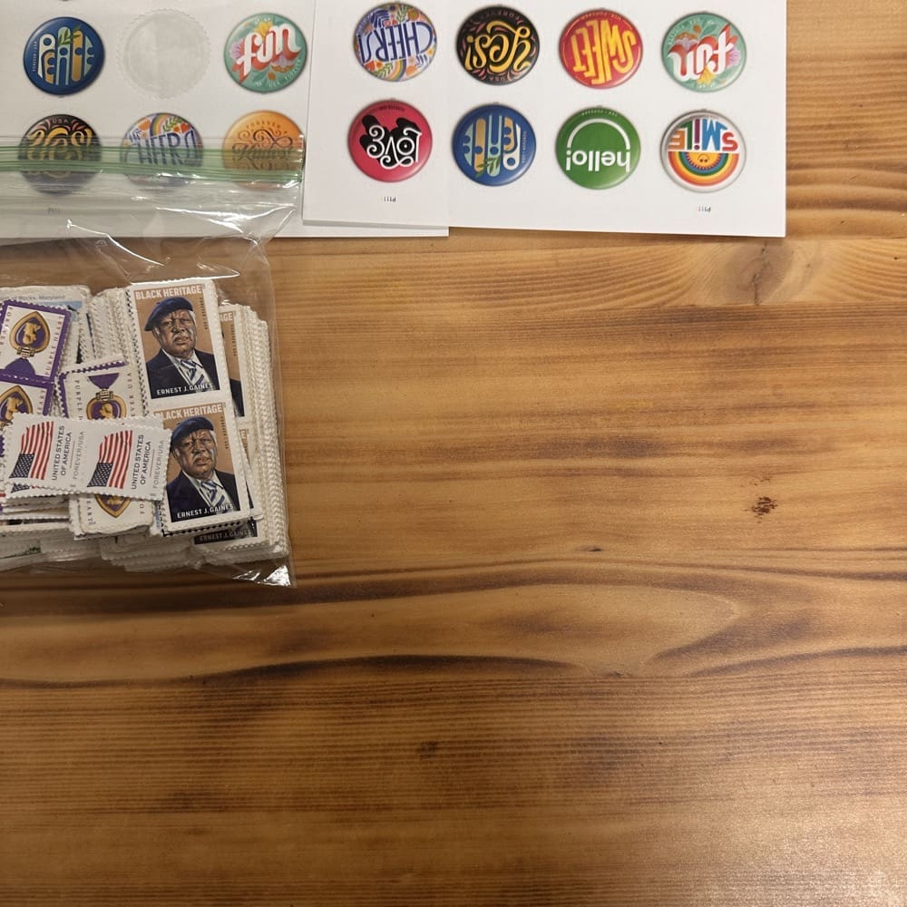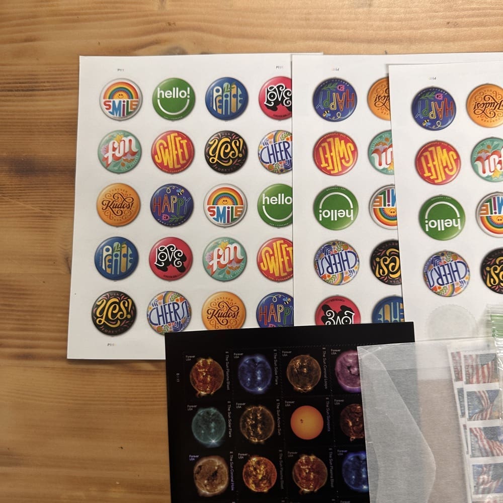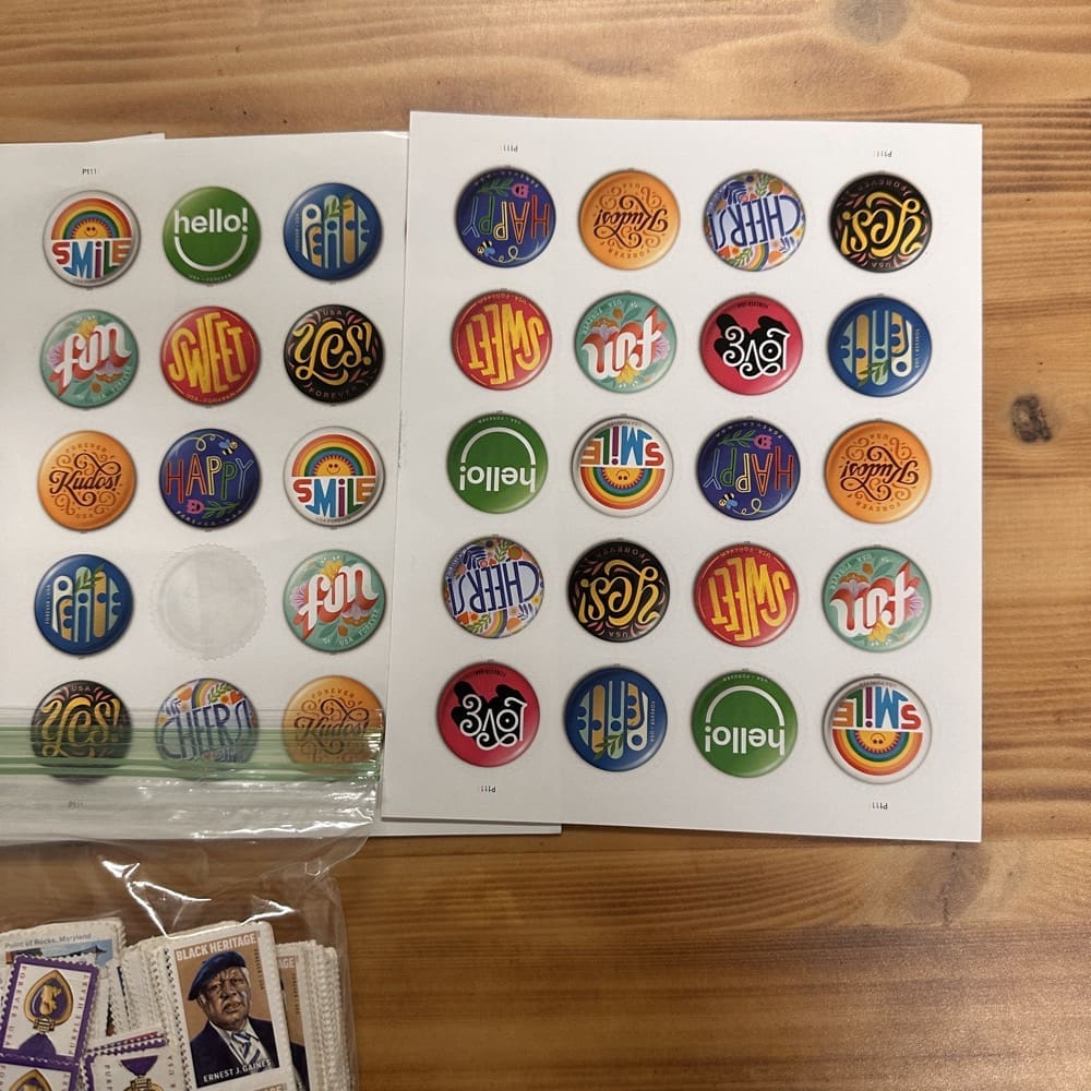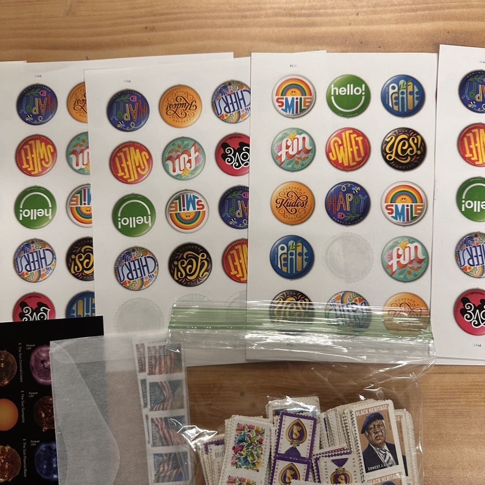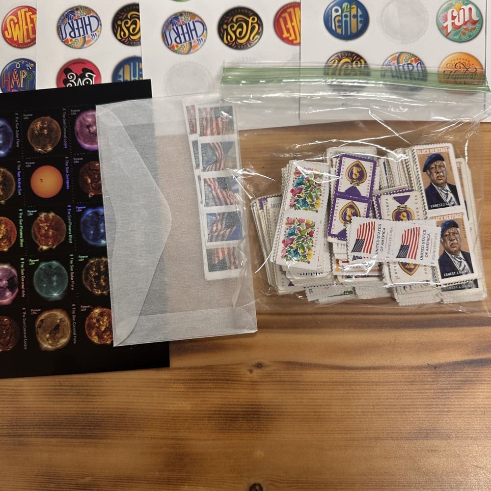 Lot of First-Class Forever® stamps in various designs.