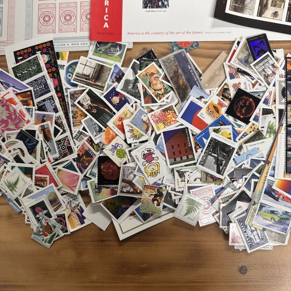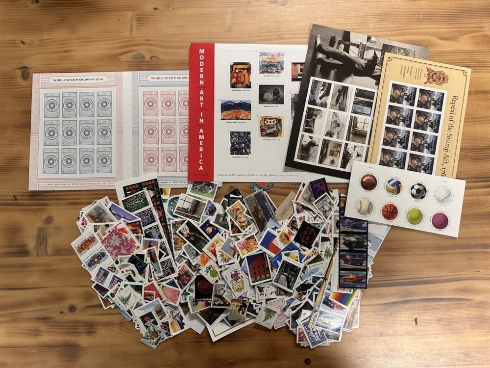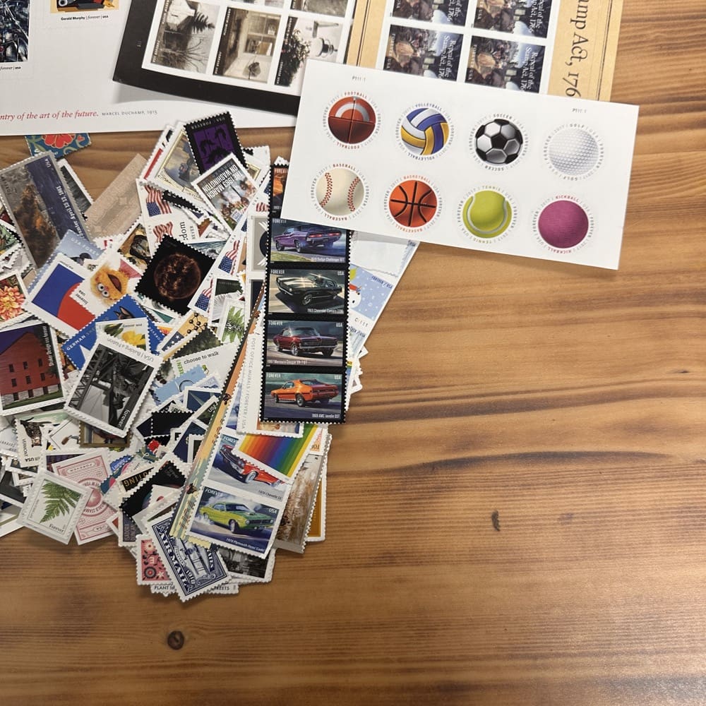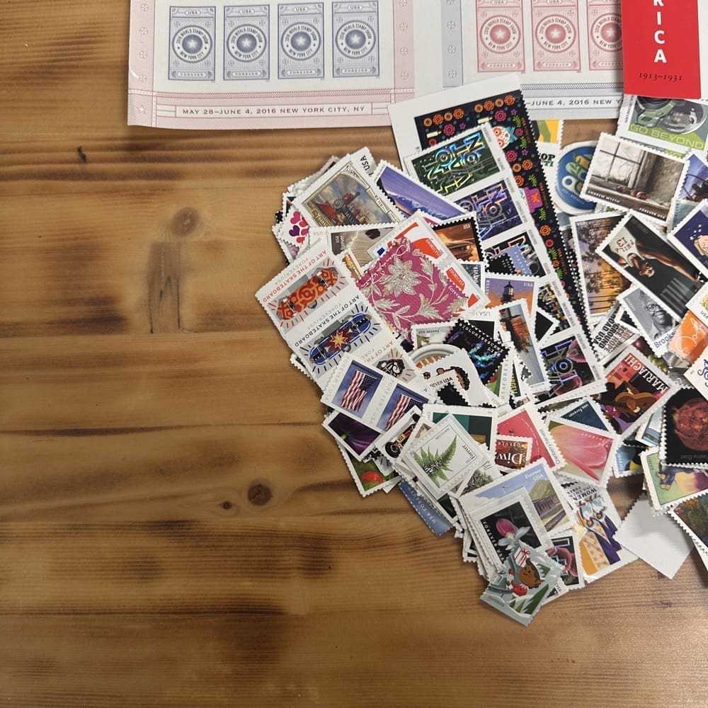 Lot of First-Class Forever® stamps in various designs.