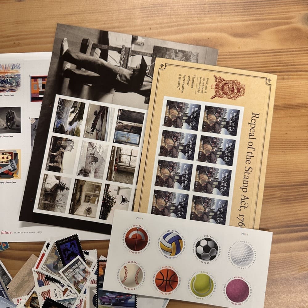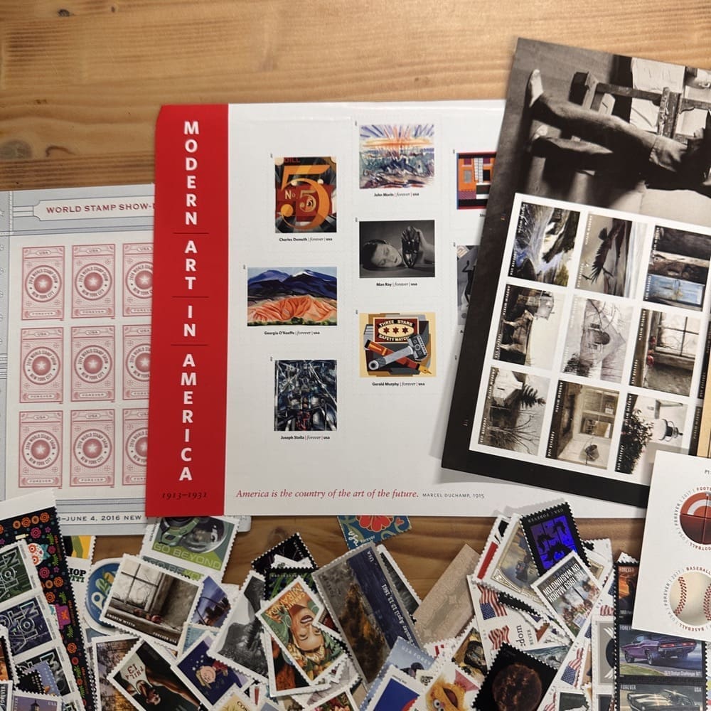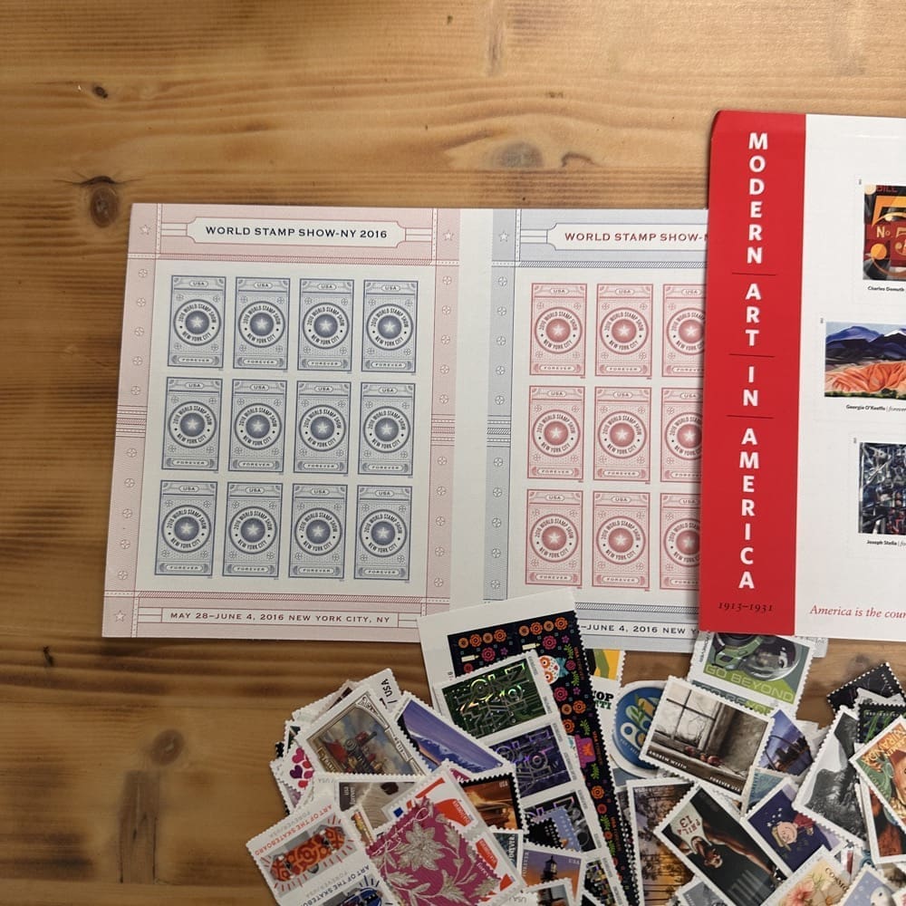 Lot of First-Class Forever® stamps in various designs.