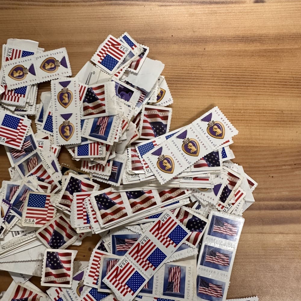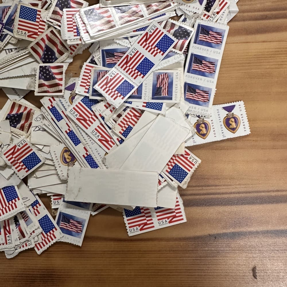 Lot of First-Class Forever® stamps in various designs.