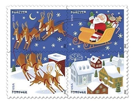 A Christmas scene of Santa and his reindeer in 4 different designs.
