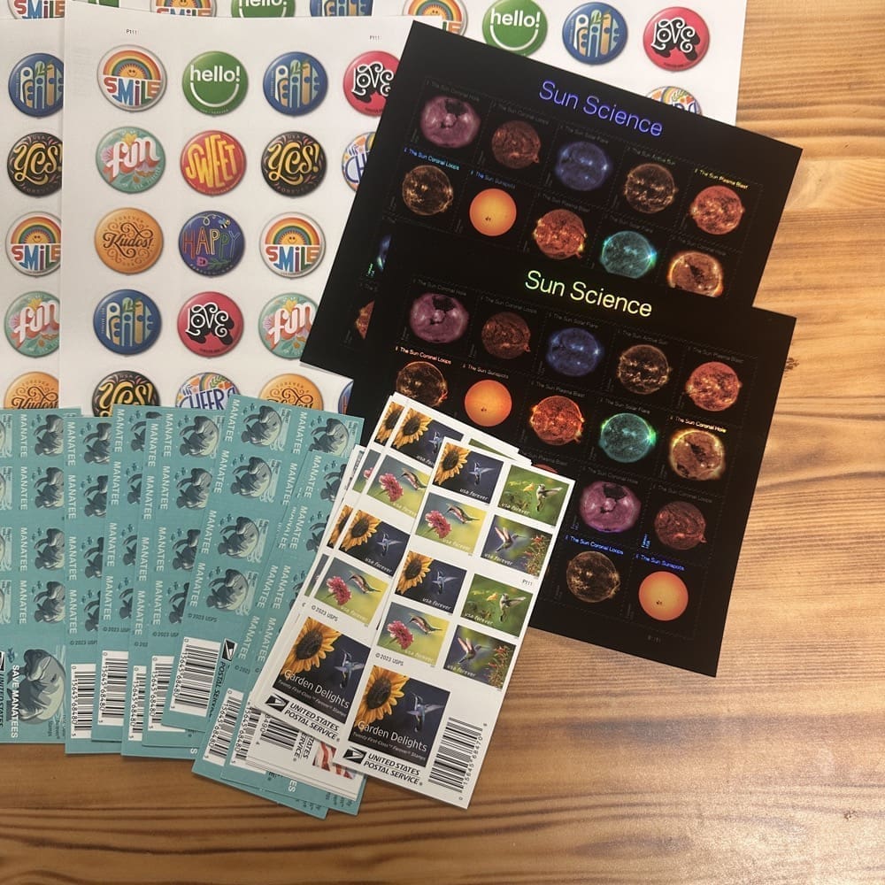 Lot of First-Class Forever® stamps in various designs.