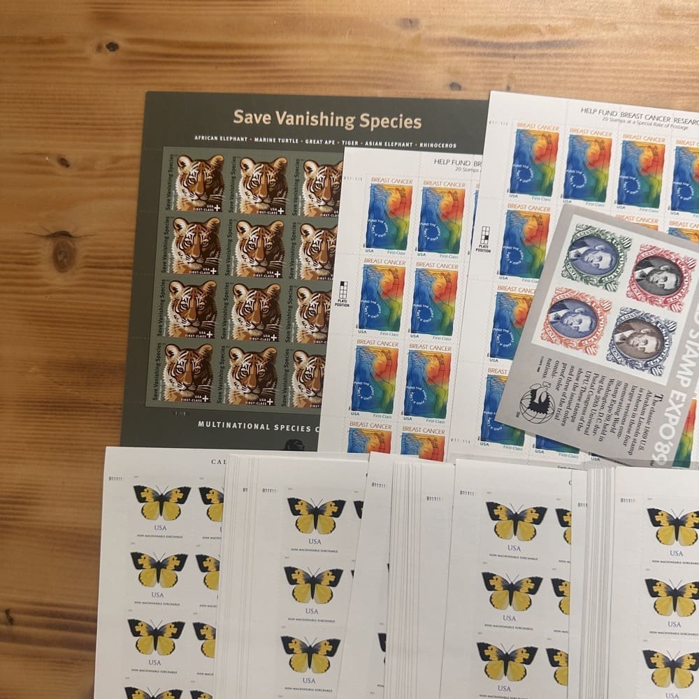 U.S. postage never expires. Save money by using high-denomination postage on your packages. Just make the shipping rate with multiple stamps. You can use them on First-Class, Priority, Express, tracking, even on insurance!