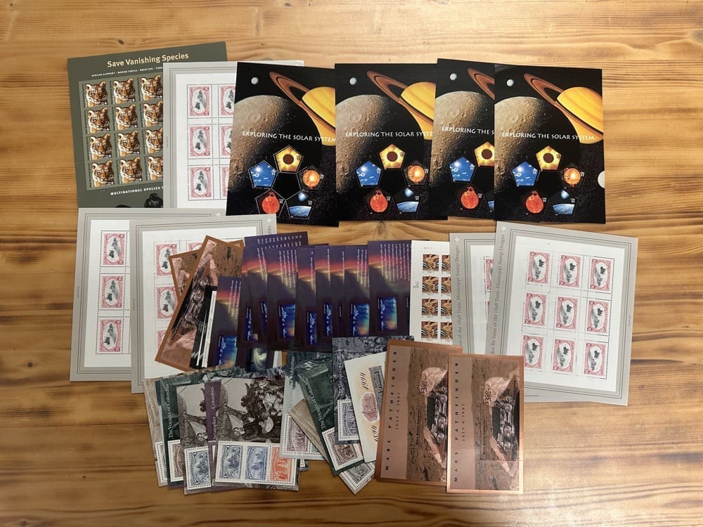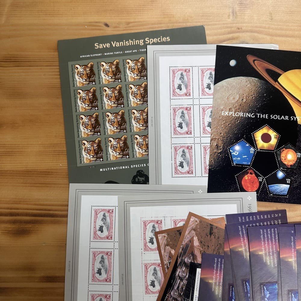 U.S. postage never expires. Save money by using high-denomination postage on your packages. Just make the shipping rate with multiple stamps. You can use them on First-Class, Priority, Express, tracking, even on insurance!