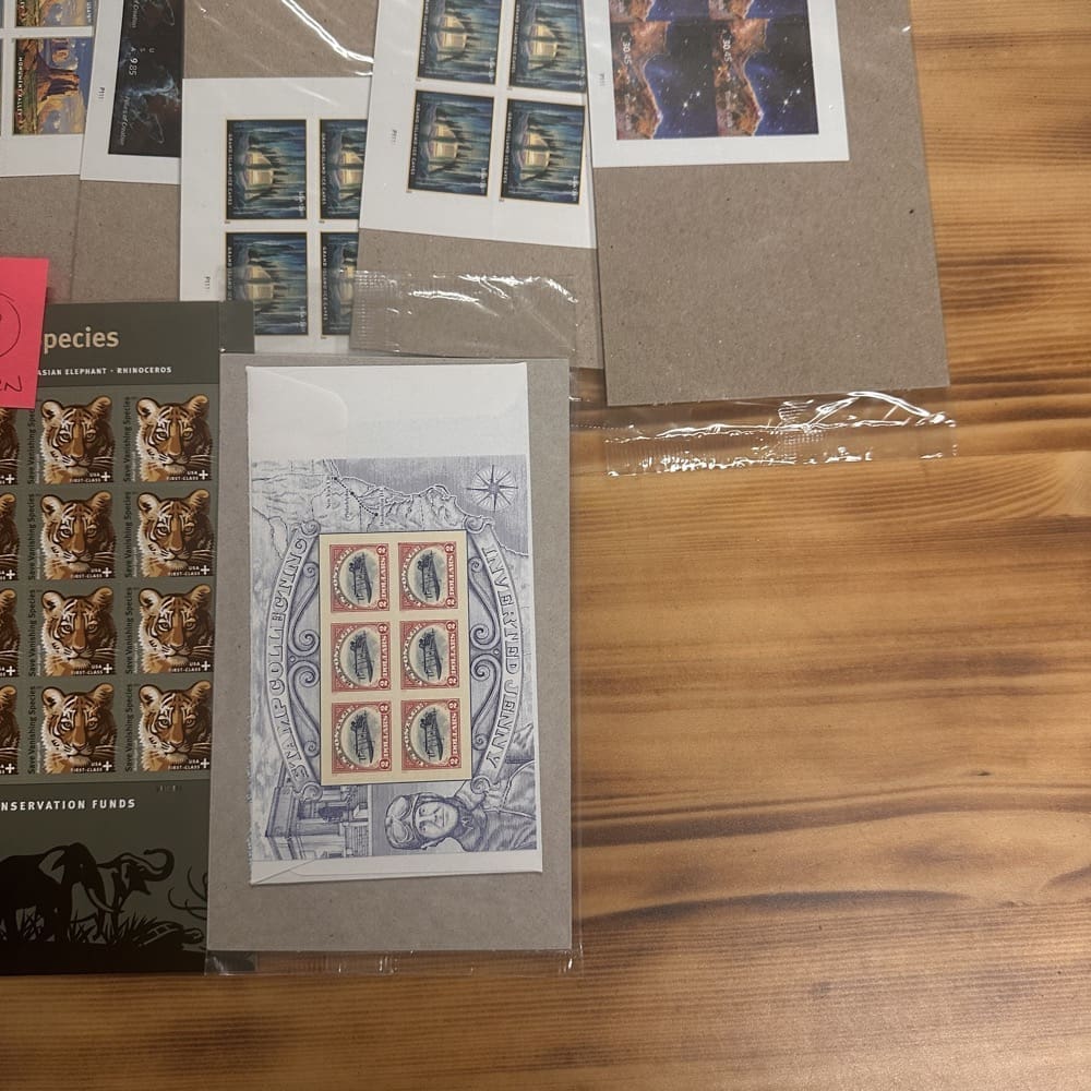 U.S. postage never expires. Save money by using high-denomination postage on your packages. Just make the shipping rate with multiple stamps. You can use them on First-Class, Priority, Express, tracking, even on insurance!