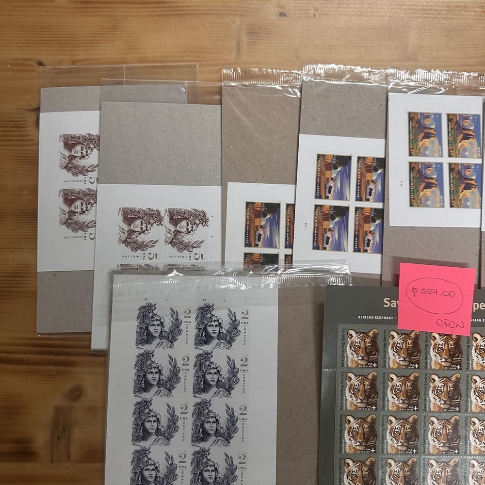 Lot of high-denomination postage stamps with values of the First-Class rate and over.
