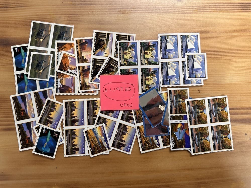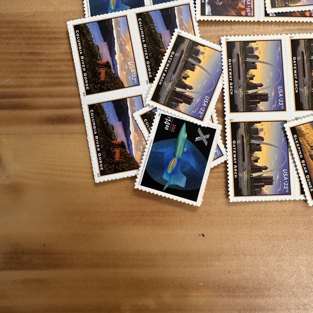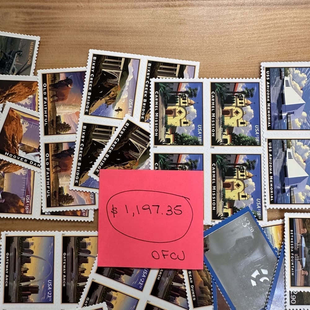 U.S. postage never expires. Save money by using high-denomination postage on your packages. Just make the shipping rate with multiple stamps. You can use them on First-Class, Priority, Express, tracking, even on insurance!