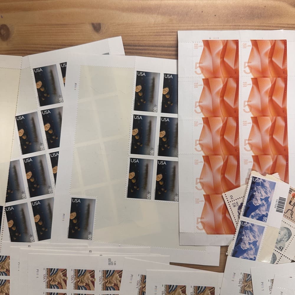 U.S. postage never expires. Save money by using high-denomination postage on your packages. Just make the shipping rate with multiple stamps. You can use them on First-Class, Priority, Express, tracking, even on insurance!