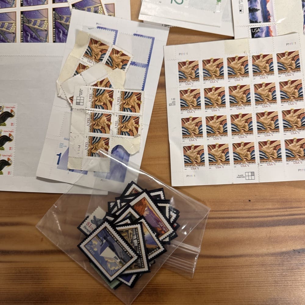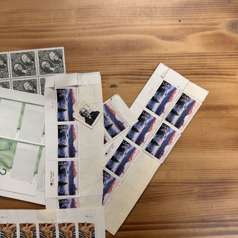 U.S. postage never expires. Save money by using high-denomination postage on your packages. Just make the shipping rate with multiple stamps. You can use them on First-Class, Priority, Express, tracking, even on insurance!