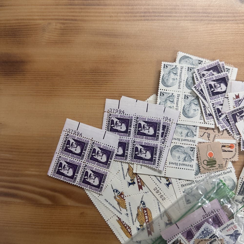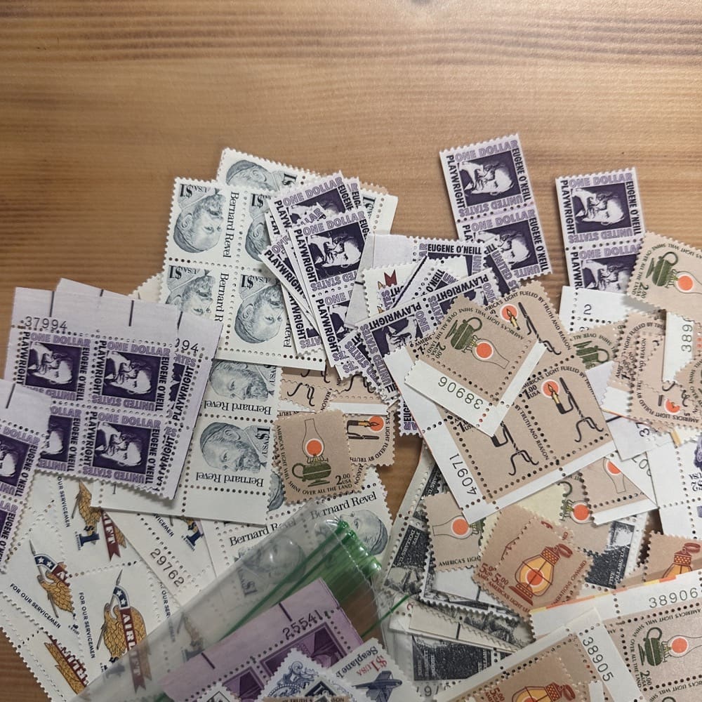 Lot of high-denomination postage stamps with values of the First-Class rate and over.