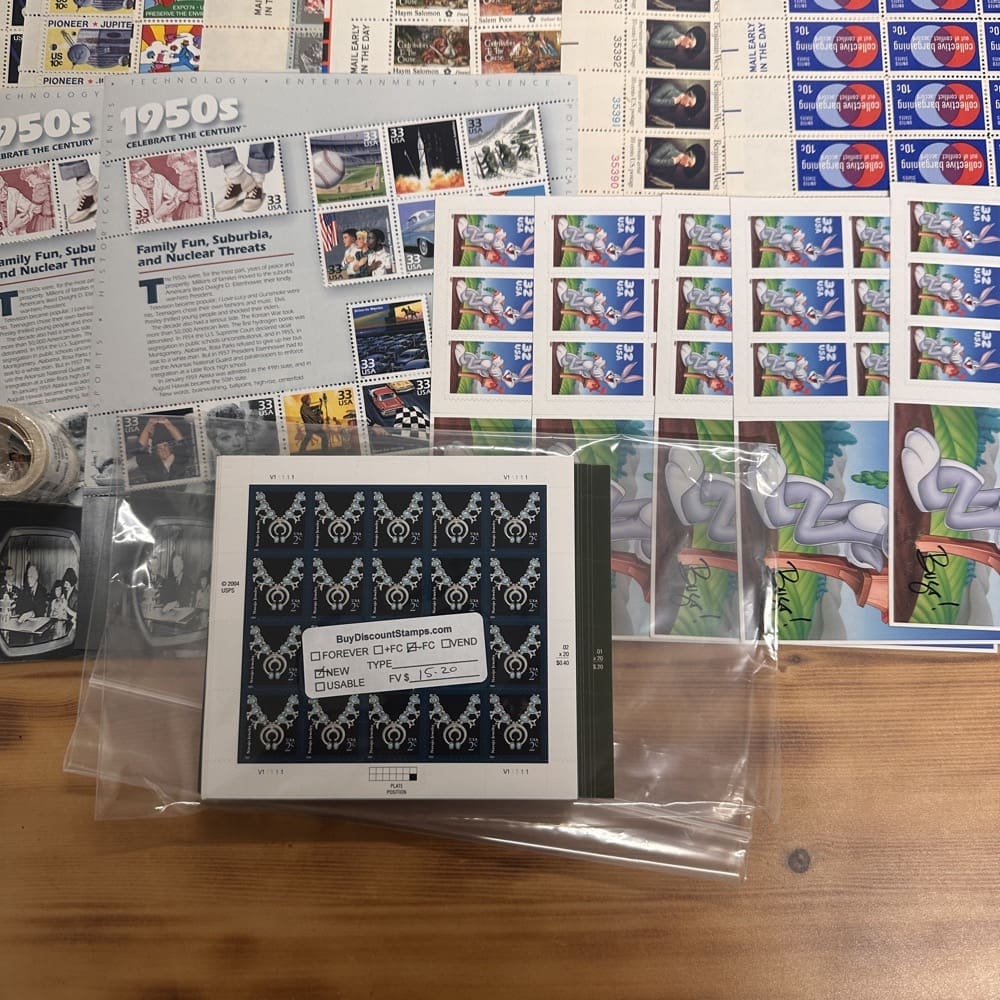 This lot is in new condition, meaning the stamps are in complete sheets, books, and/or rolls. Post Office fresh brand new condition perfect for use or resale.