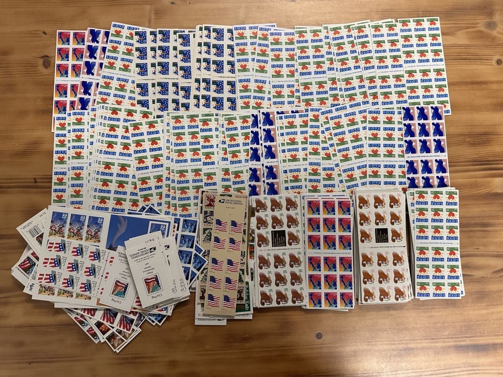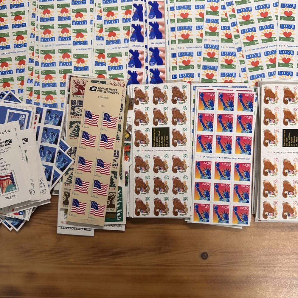 U.S. postage never expires. Save money by using low-denomination postage on your mailings. Just make the shipping rate with multiple stamps. You can use them on First-Class, Priority, Express, tracking, even on insurance!