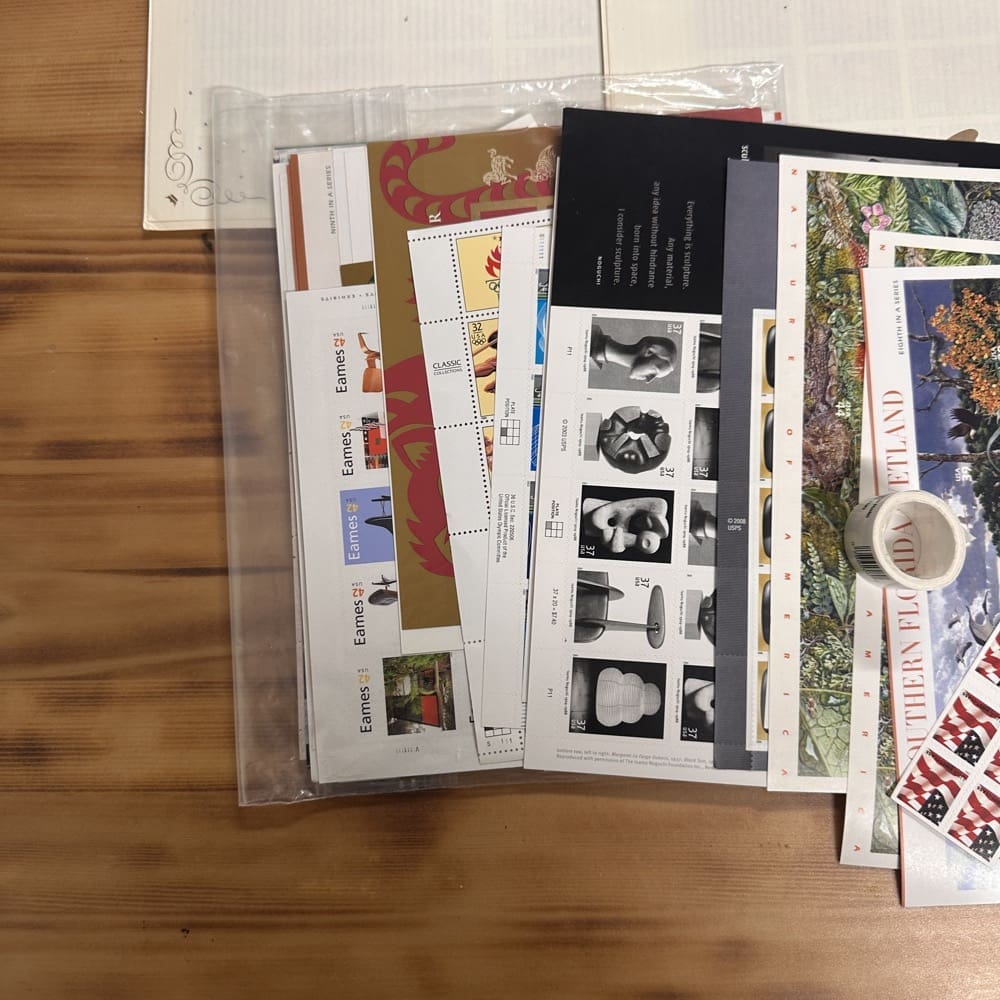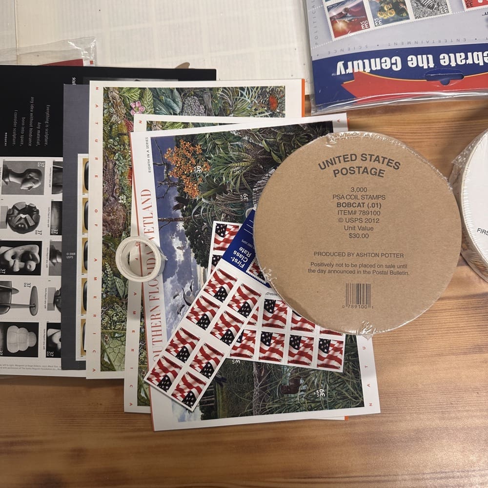 Stamp value denominations are all below the current First-Class rate, and may be self-adhesive or moisture activated, unless otherwise noted in the product title or description below.