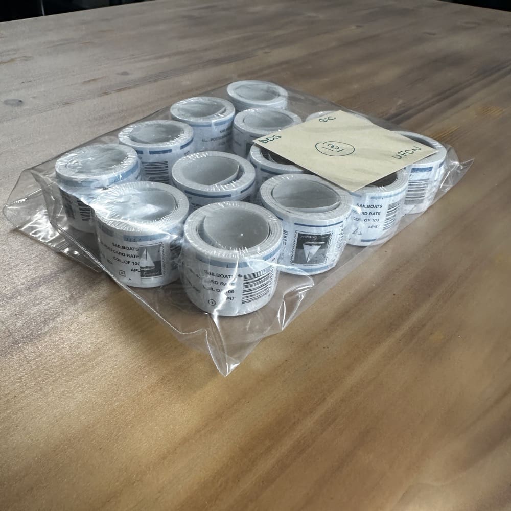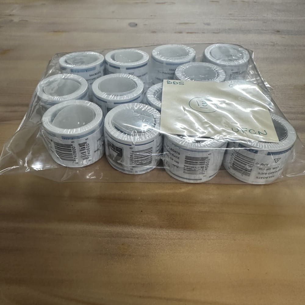 Stamp value denominations are all below the current First-Class rate, and may be self-adhesive or moisture activated, unless otherwise noted in the product title or description below.