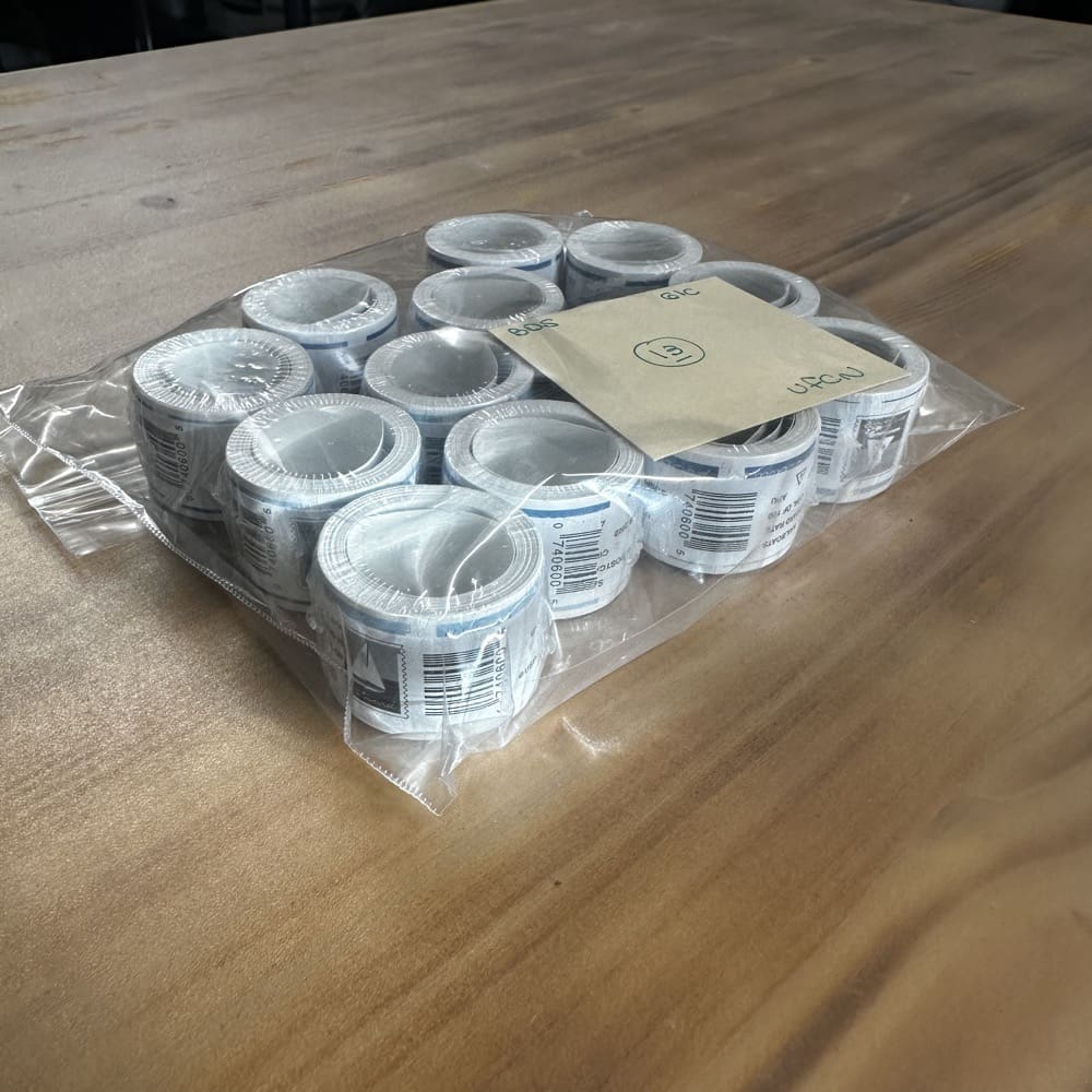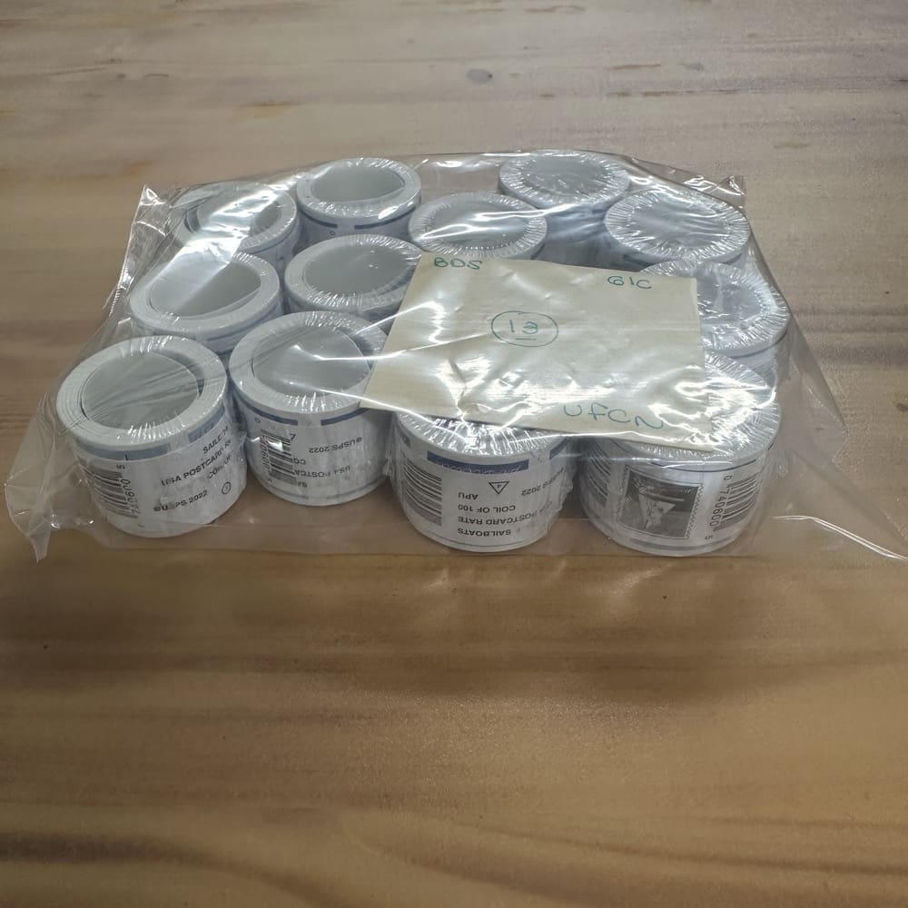 Stamp value denominations are all below the current First-Class rate, and may be self-adhesive or moisture activated, unless otherwise noted in the product title or description below.