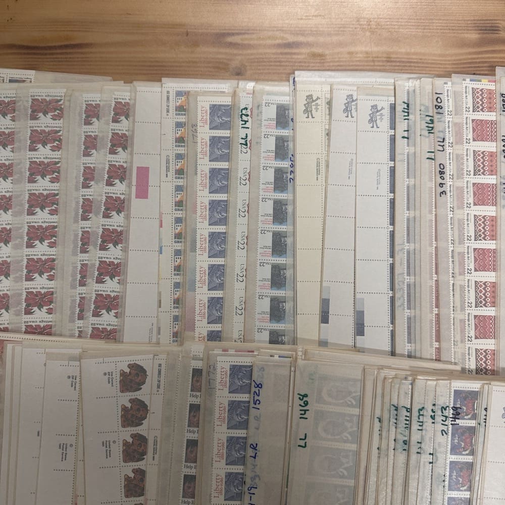 Stamp value denominations are all below the current First-Class rate, and may be self-adhesive or moisture activated, unless otherwise noted in the product title or description below.