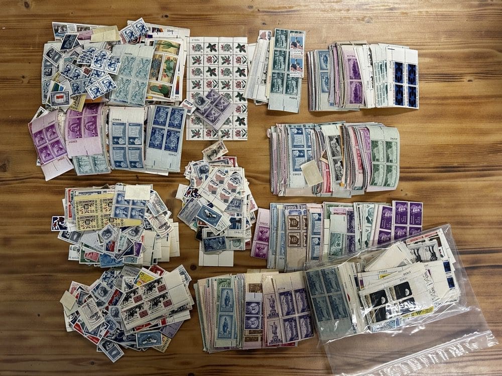 Lot of low-denomination postage stamps with values under the current First-Class rate.