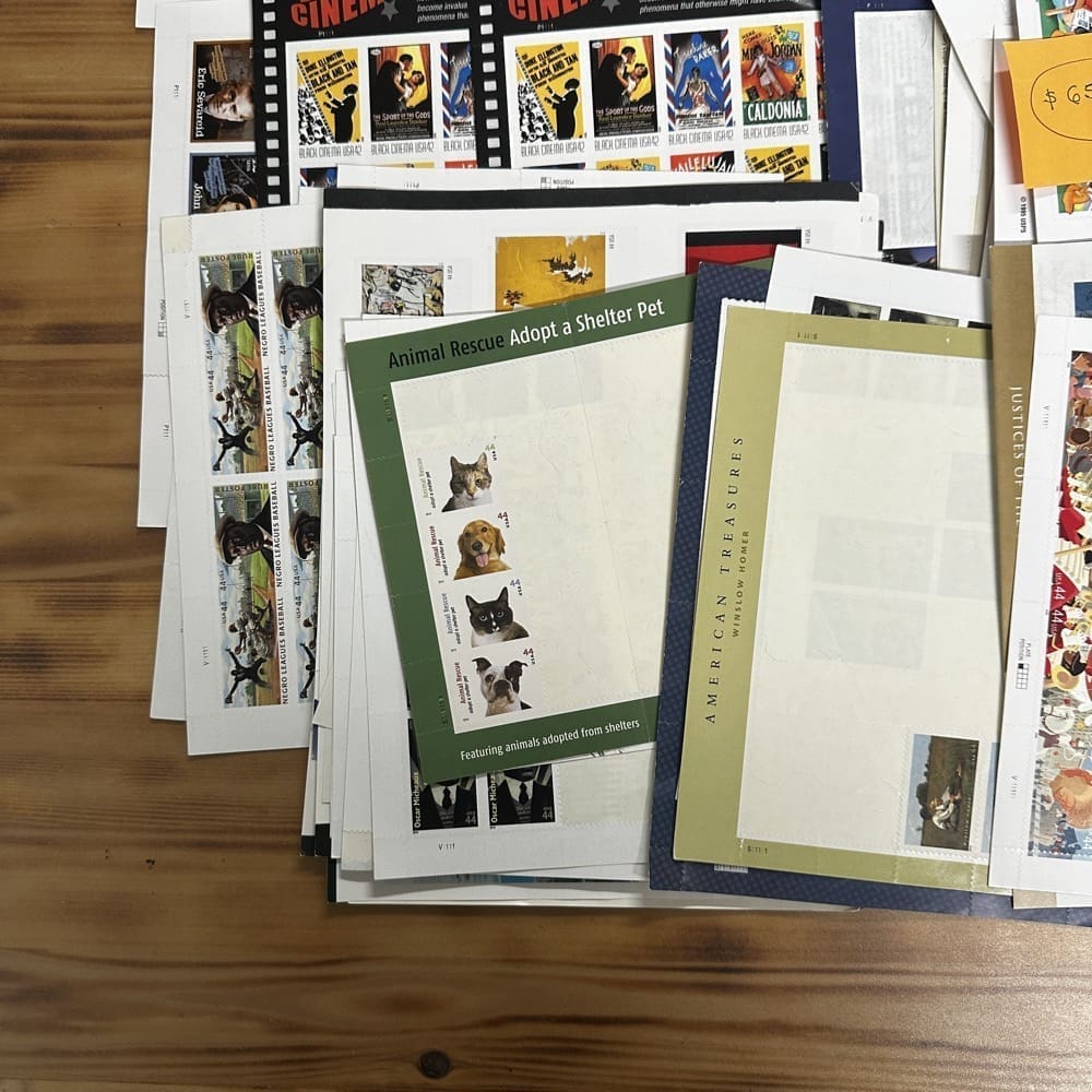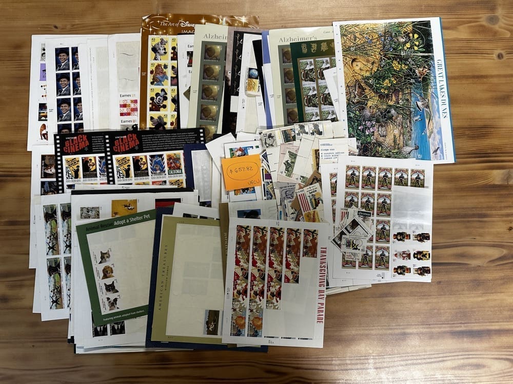 Stamp value denominations are all below the current First-Class rate, and may be self-adhesive or moisture activated, unless otherwise noted in the product title or description below.