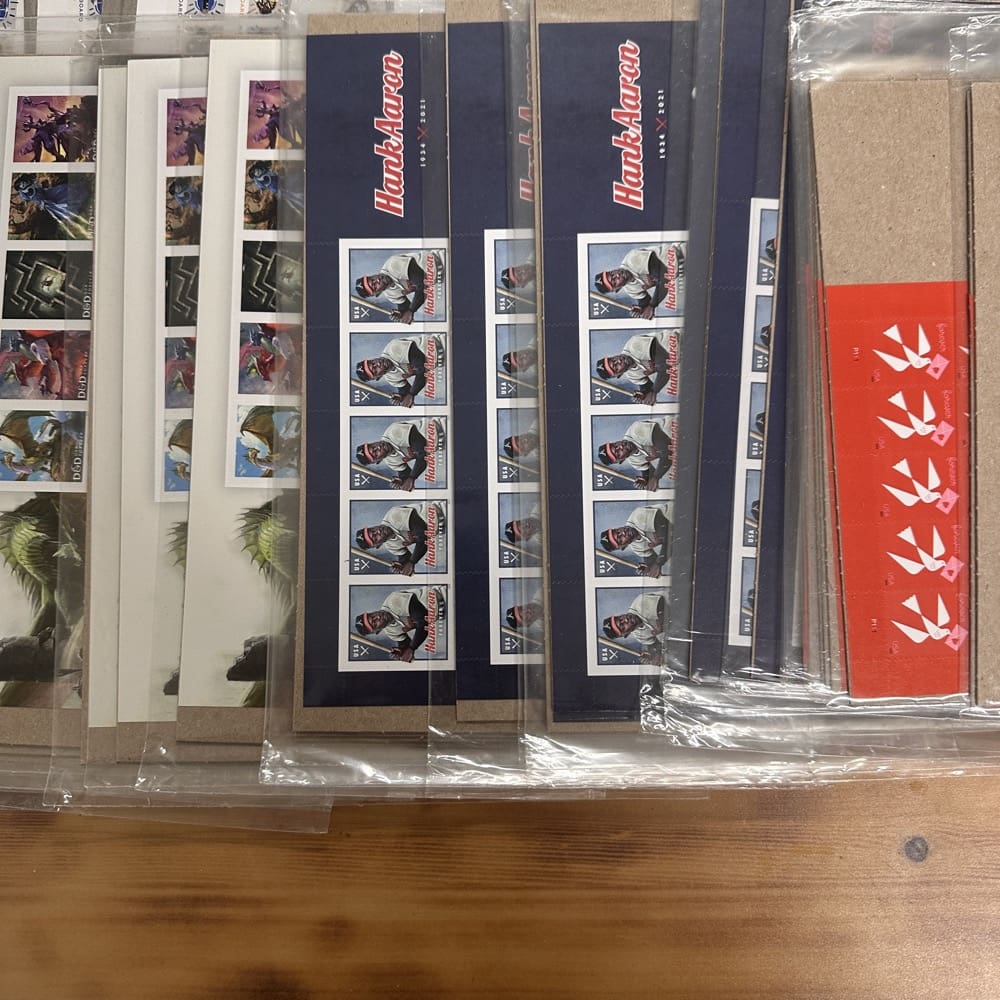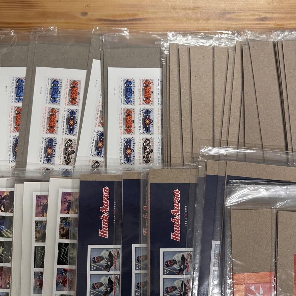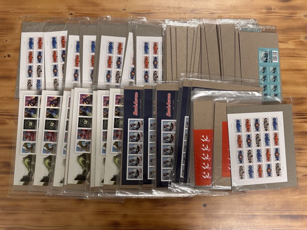 Lot of First-Class Forever® stamps in various designs.