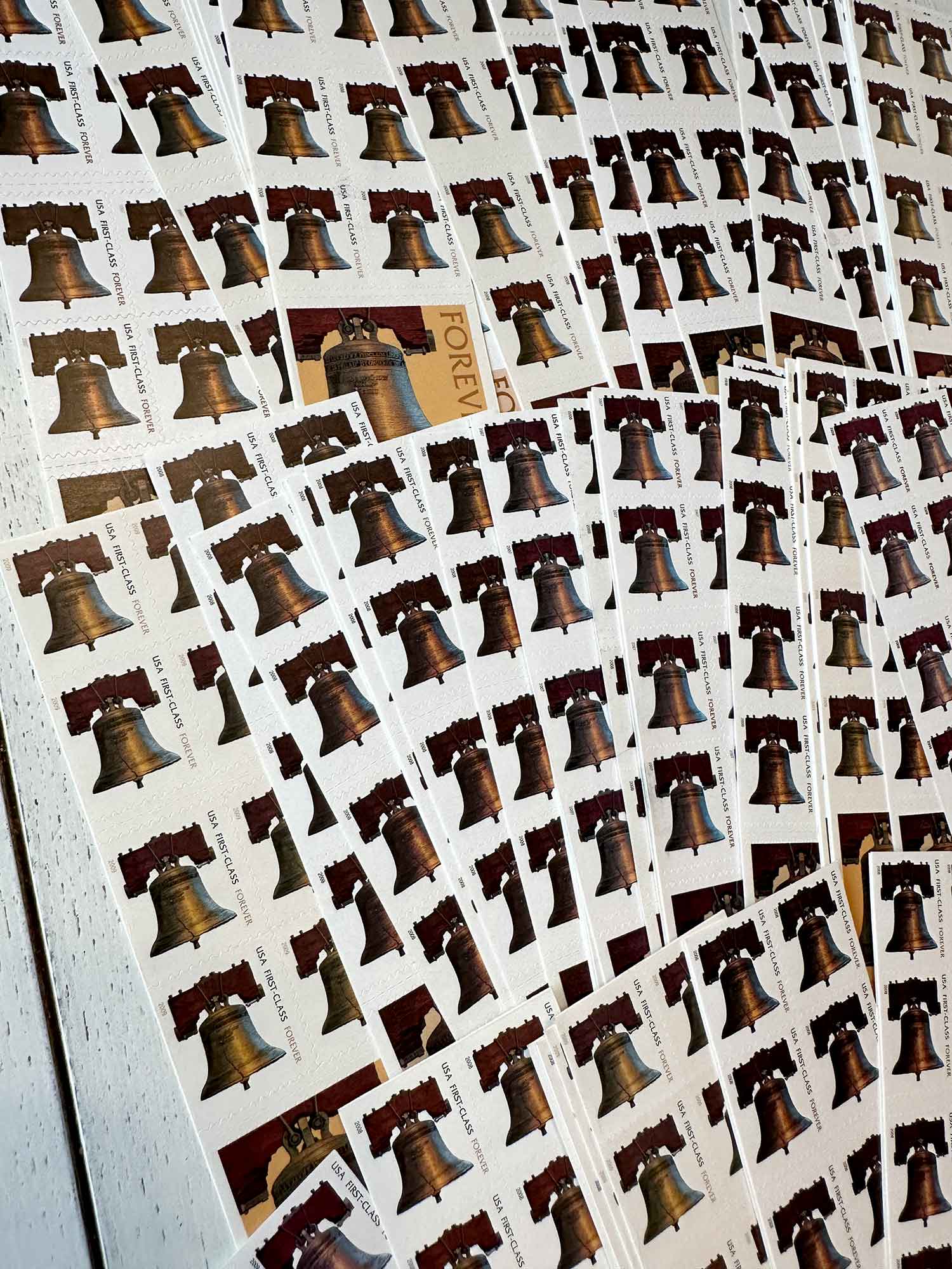 Lot of First-Class Forever® stamps in various designs.