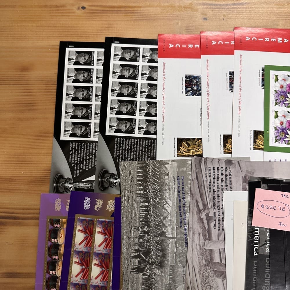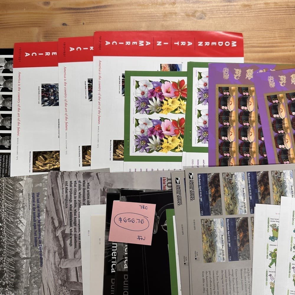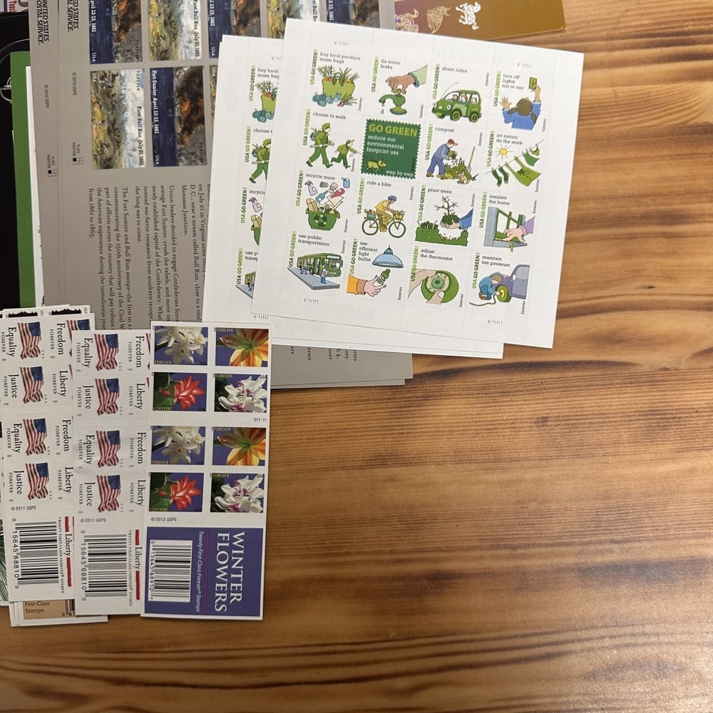 Lot of First-Class Forever® stamps in various designs.