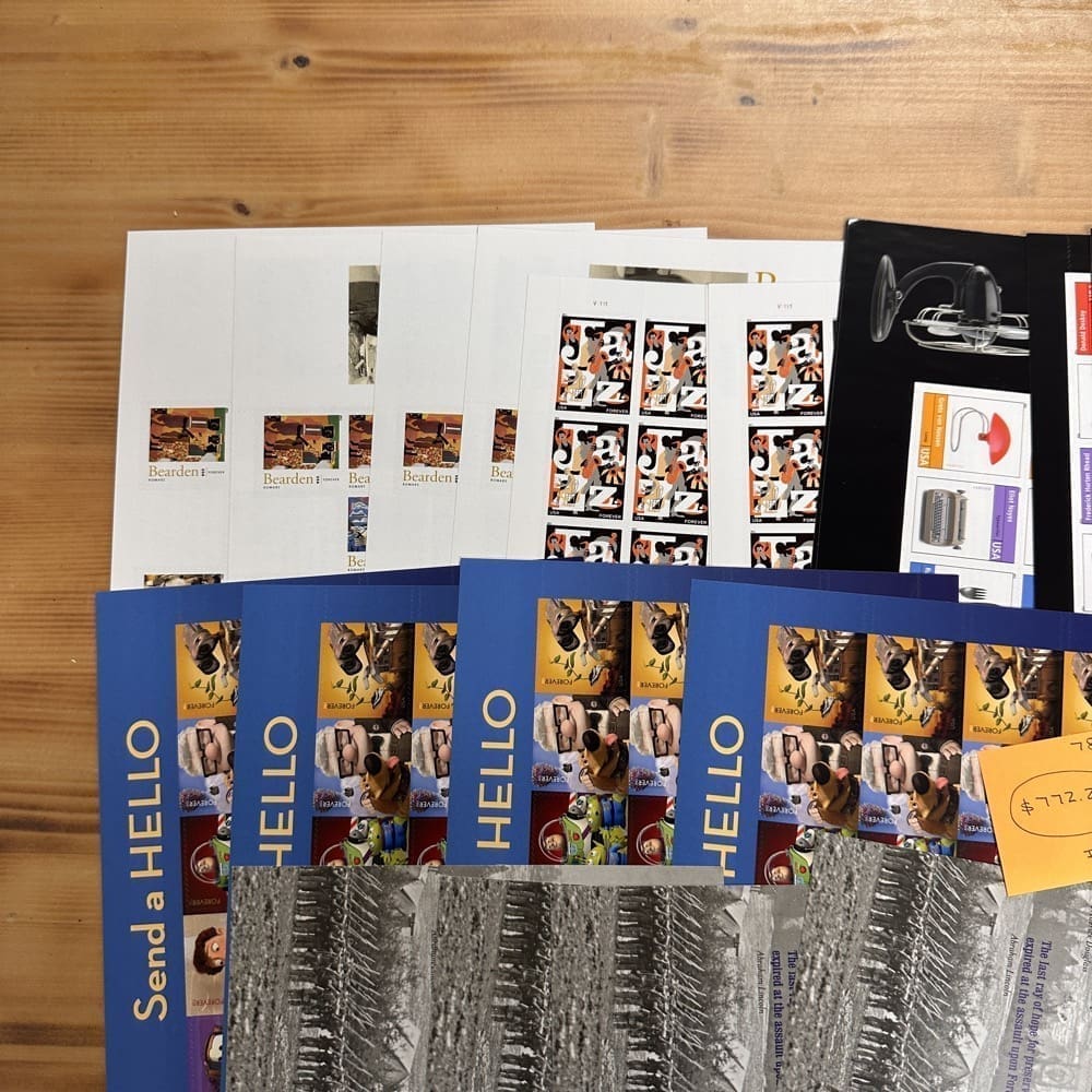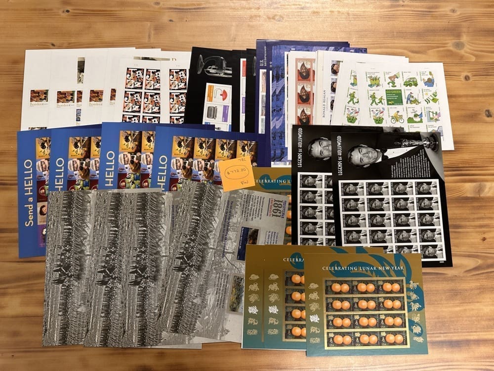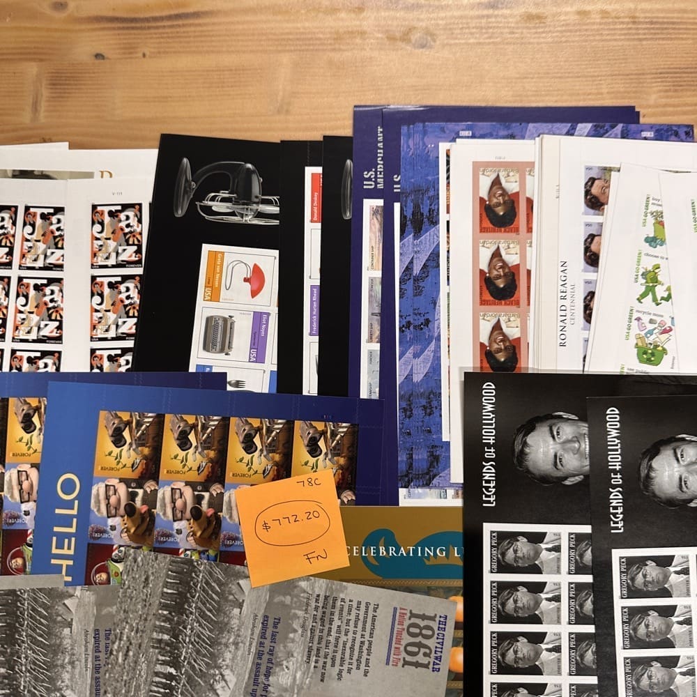 Lot of First-Class Forever® stamps in various designs.