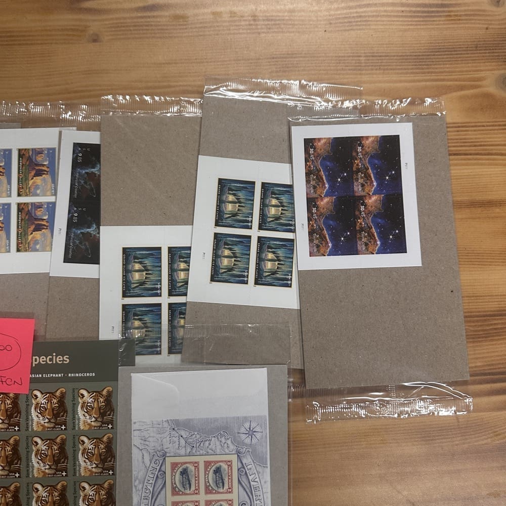 U.S. postage never expires. Save money by using high-denomination postage on your packages. Just make the shipping rate with multiple stamps. You can use them on First-Class, Priority, Express, tracking, even on insurance!
