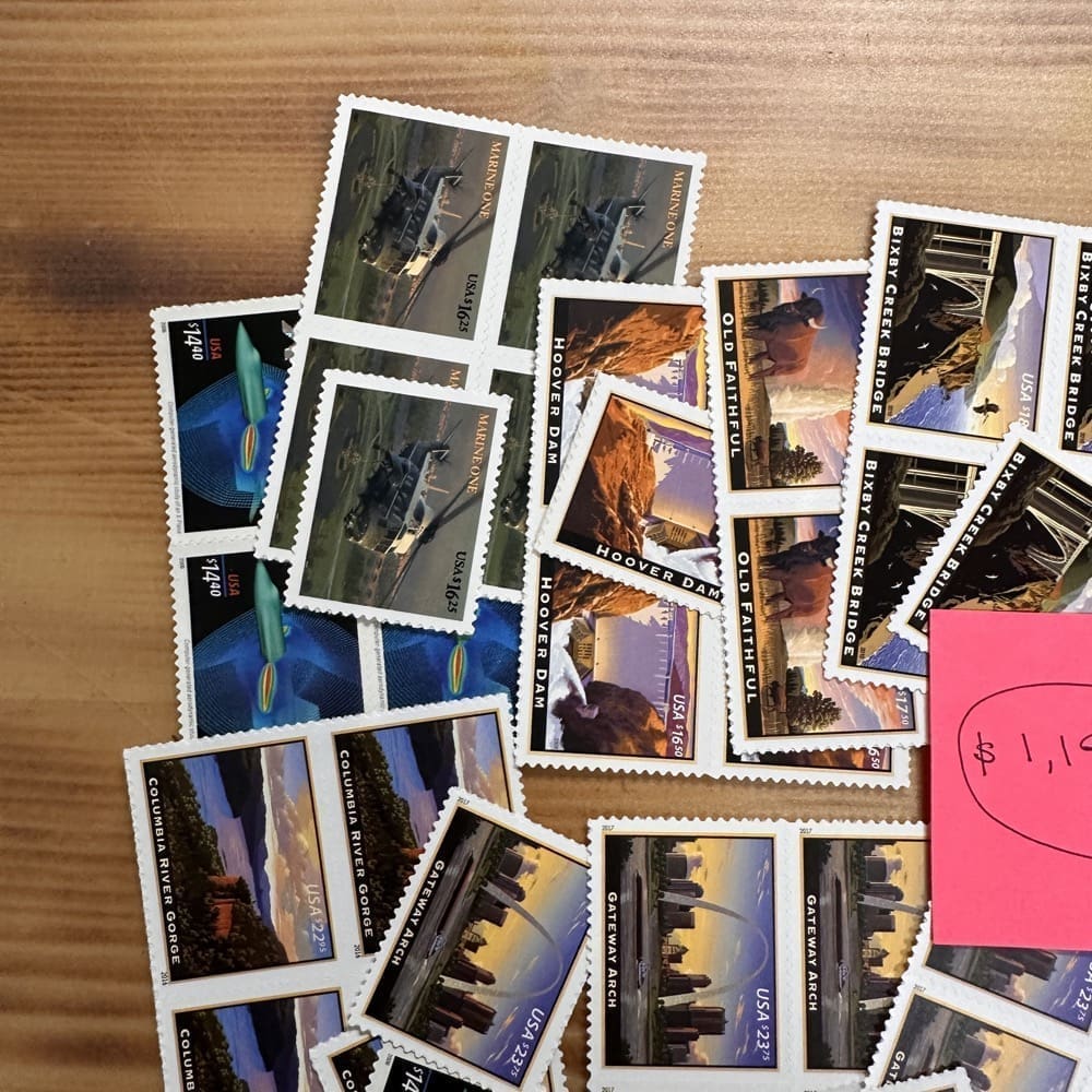 U.S. postage never expires. Save money by using high-denomination postage on your packages. Just make the shipping rate with multiple stamps. You can use them on First-Class, Priority, Express, tracking, even on insurance!