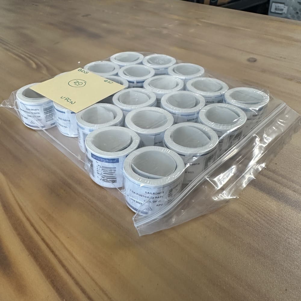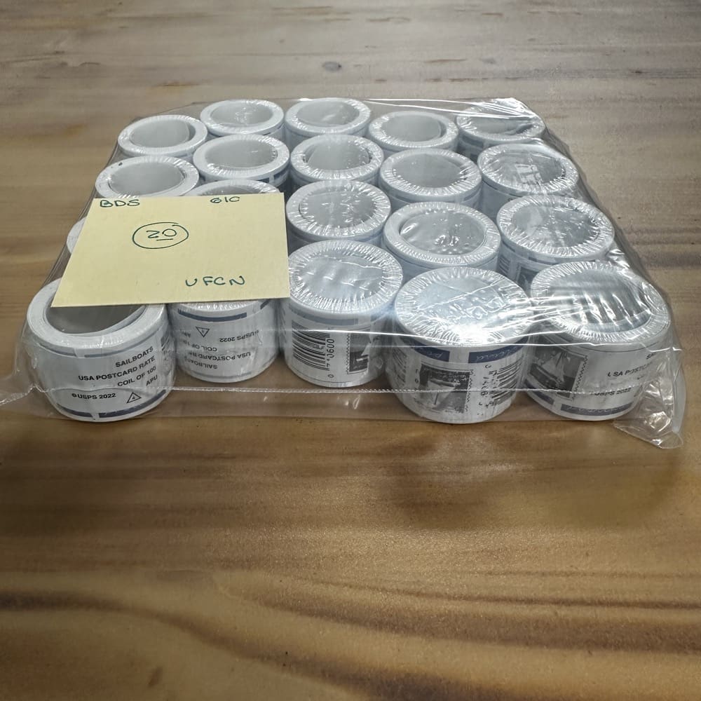 Stamp value denominations are all below the current First-Class rate, and may be self-adhesive or moisture activated, unless otherwise noted in the product title or description below.