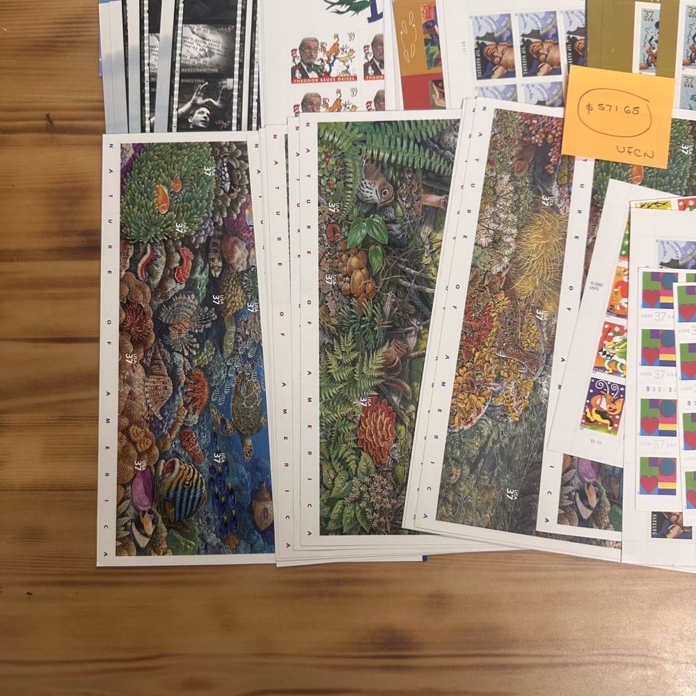 This lot is in new condition, meaning the stamps are in complete sheets, books, and/or rolls. Post Office fresh brand new condition perfect for use or resale.
