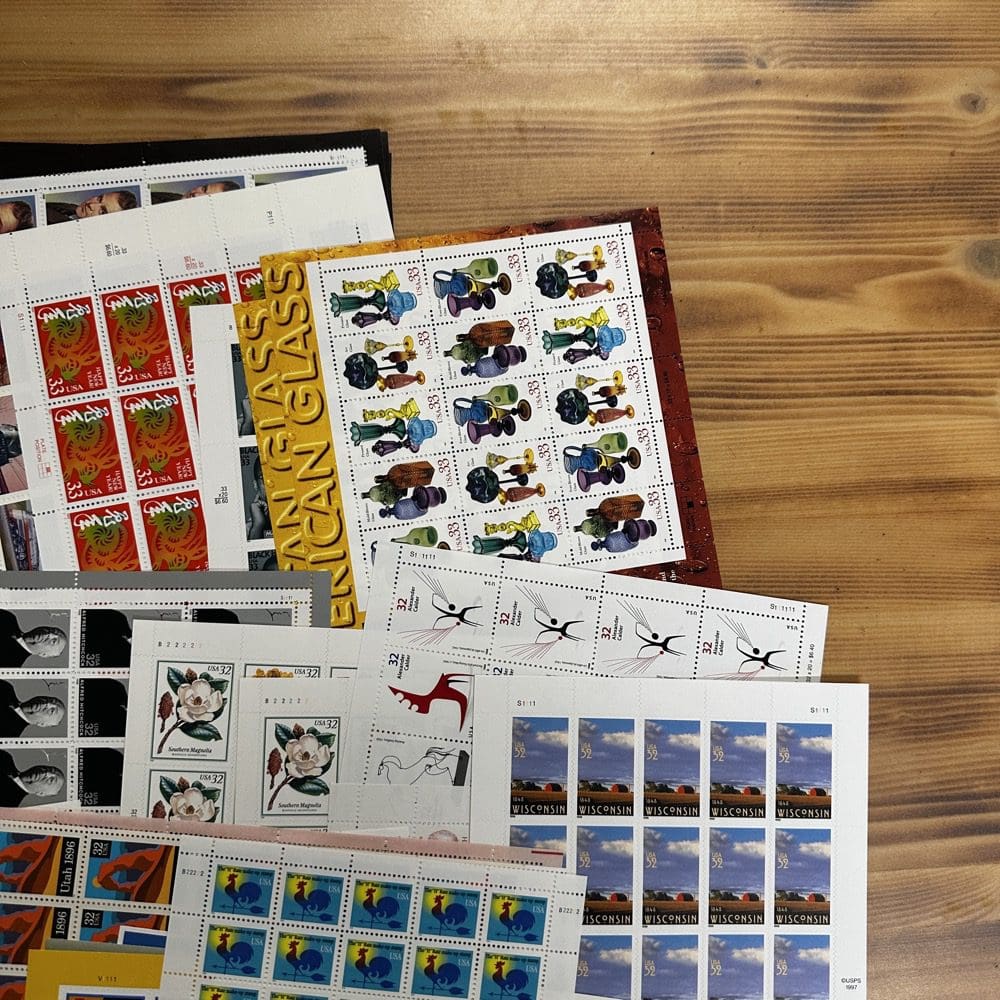 Lot of low-denomination postage stamps with values under the current First-Class rate.