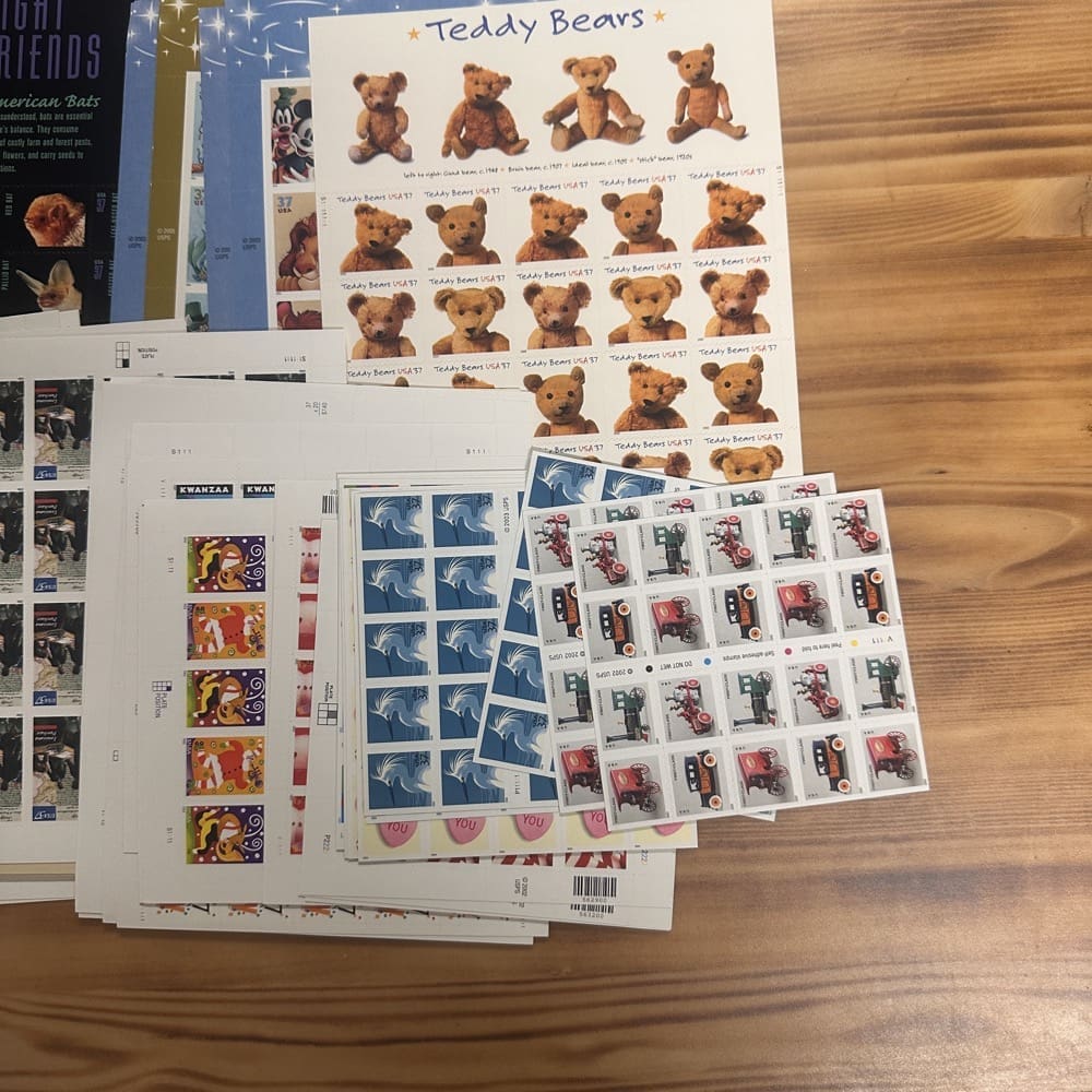 U.S. postage never expires. Save money by using low-denomination postage on your mailings. Just make the shipping rate with multiple stamps. You can use them on First-Class, Priority, Express, tracking, even on insurance!