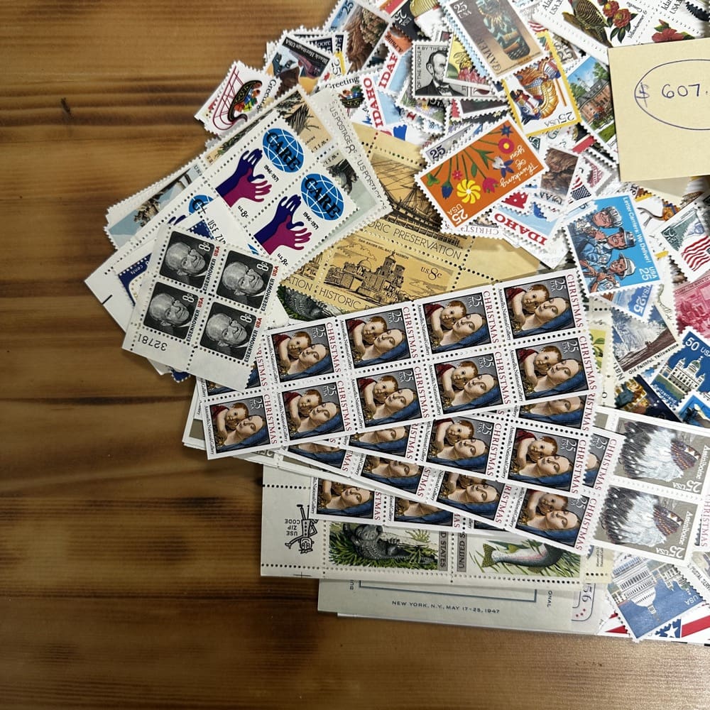 Lot of low-denomination postage stamps with values under the current First-Class rate.